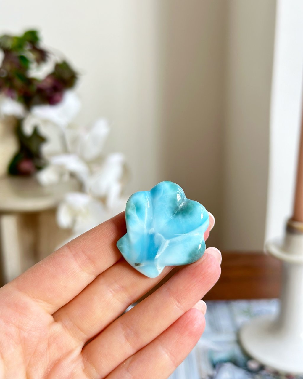 Očista: velmi mu svědčí voda a proto jej vodou čistíme i nabíjíme, ideálně v misce s vodou při úplňkové noci, tímto způsobem si lze vyrobit posvěcenou vodu, nejen, že kámen očistíte, ale vodu z misky, kde byl předtím pár hodin larimar, nevyhazujte, ale uschovejte a můžete ji pak používat k různým obřadům a rituálům