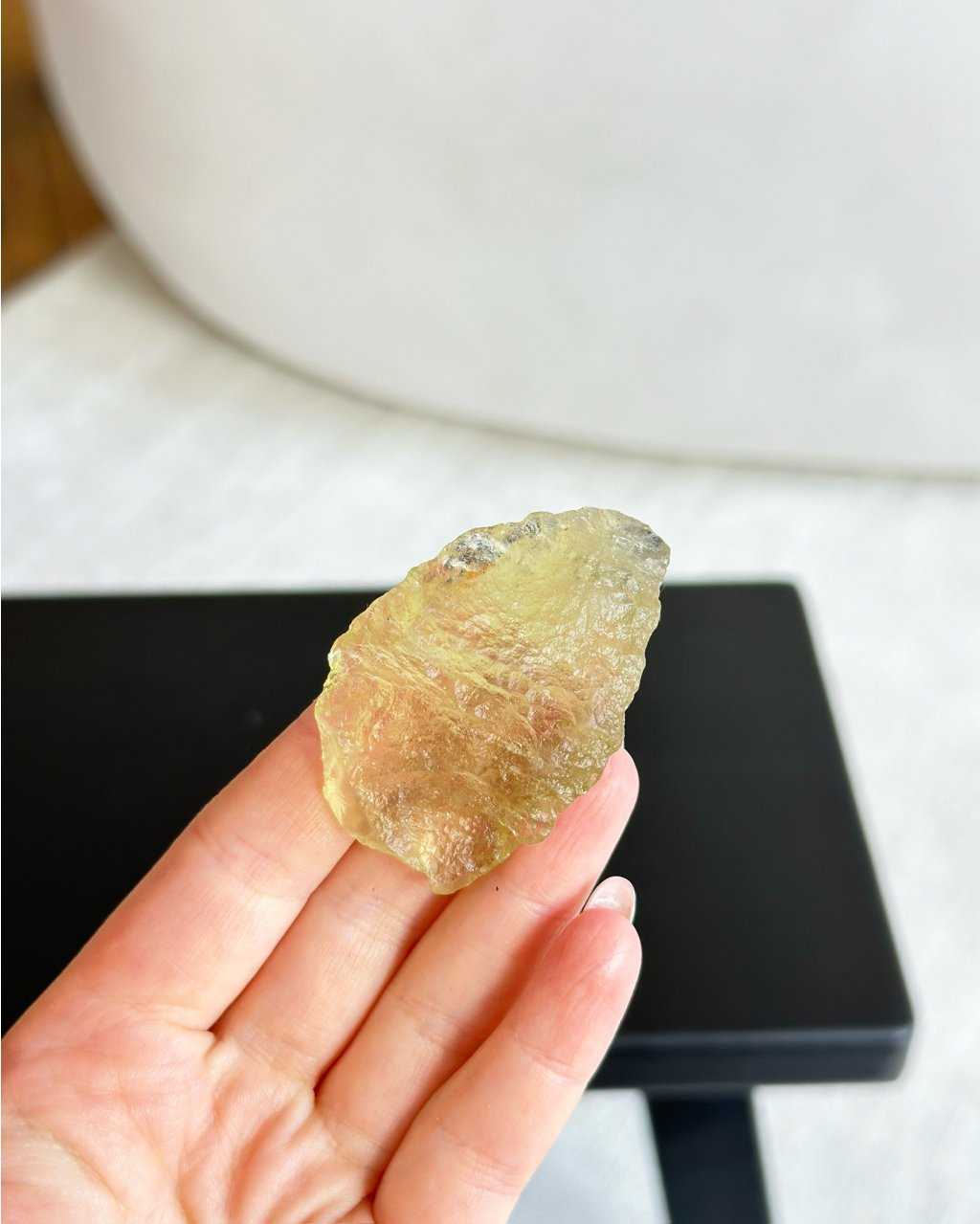 Stejně jako dobře známe vltavíny, libyjský tektit/sklo nepochází ze Země ale z vesmíru, přiletěl k nám jako meteorit na území Líbye. Tento vzácný kousek horniny je opředen tajemstvím a magickou silou. O této síle věděl i egyptský faraon Tutanchamon, nechal se pohřbít se šperkem ve tvaru scarabea z libyjského skla. Věřil, že ho převede do vyšších sfér a dimenzí po jeho smrti. Vypraví se, že v době kamenné, před 30 - 18 tisíci lety ho lidé používali k výrobě štípaných nástrojů. To lze poznat i na struktuře těchto kousků. Tento nadpozemský unikát lze vnímat jako Boží vzkaz, který nese ohromnou moudrost a poznání multidimenzionality. Nese na Gaiu sílu z hvězd. Lze z něj načíst esenci a energii slunce. Působí hlavně na solární čakru, pomáhá s přijetím sebe sama, vede nás k pocitu vnitřního naplnění, radosti a životu v souladu s vesmírnými zákony. Posiluje hojnost a kreativitu, pomáhá k sebepoznání každého, kdo je připraven propojit svou představivost s cestou svojí duše.