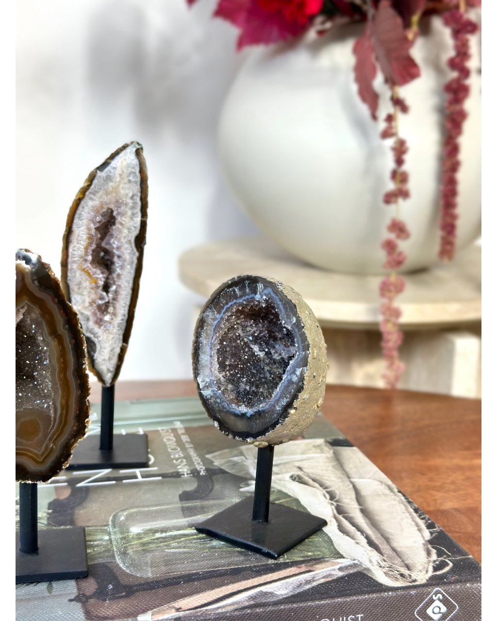 Acháty s vnitřní drúzou bývají výjimečně vhodné pro lidi, kteří se učí naslouchat sobě. Nepřehluší tě jako jiné krystaly – spíš tě pozvou zpět domů. Do ticha, kde si konečně uslyšíš.