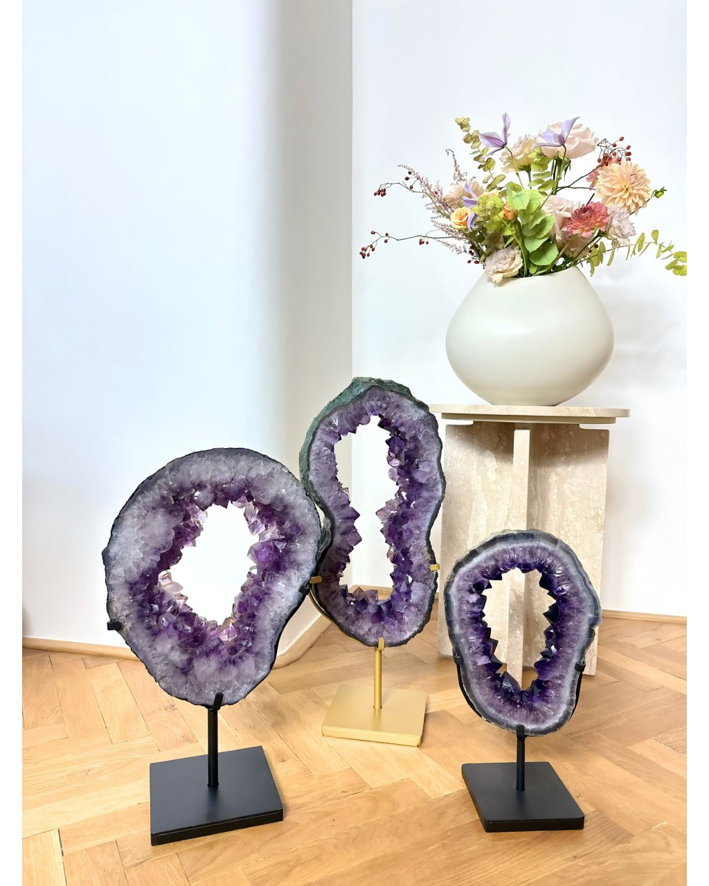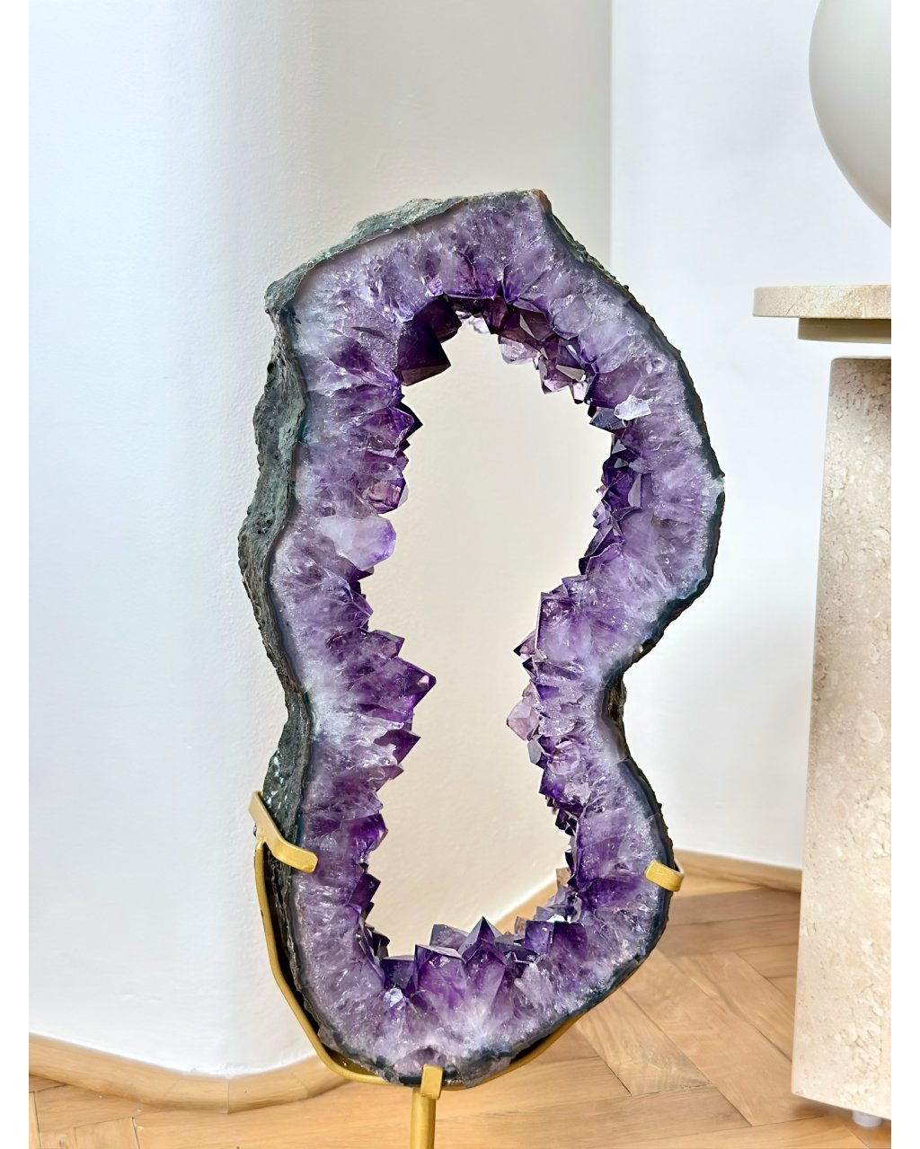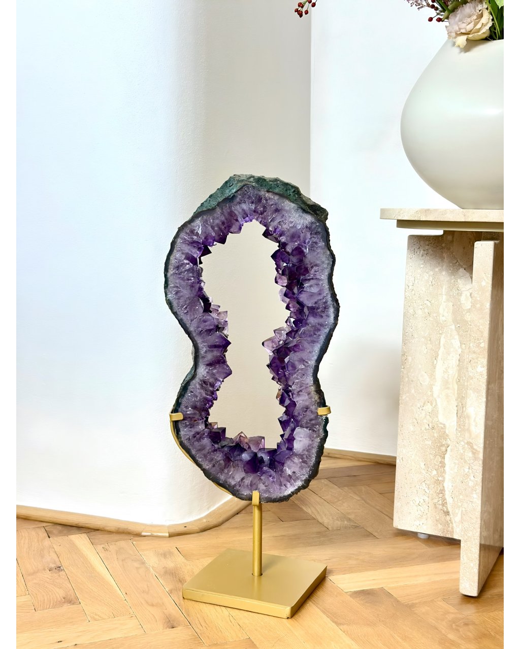 Hloubka ametystové fialové připomíná pohled do hvězdné brány, je to vstupní cesta k vyšším rovinám vědomí, která dokáže očistit i povznášet zároveň. Tento portál je živý strážce a energetický maják, který svou přítomností otevírá srdce i mysl a proměňuje každý prostor v místo síly.