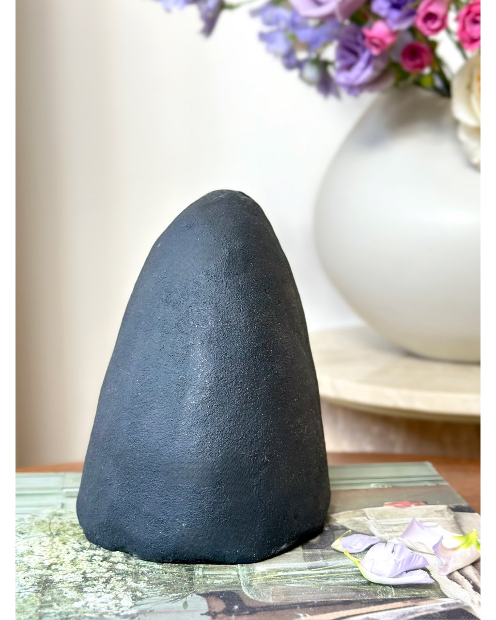 Ametyst v této podobě nepracuje povrchně. Vytváří hluboké pole ticha, které uklidňuje myšlenkové proudy, zjemňuje emoce a otevírá prostor pro jasnější vnímání. Je to kámen, který nesvítí navenek, ale dovnitř. Podporuje vnitřní vhled, napojení na jemné roviny bytí a pocit, že nejsi oddělený od celku, ale jeho přirozenou součástí.