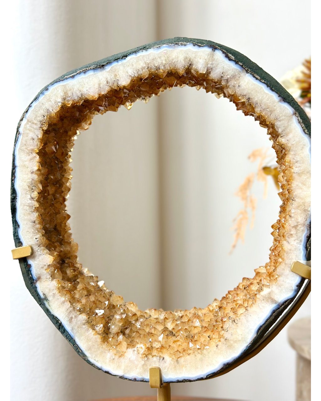 Přirozené sluneční světlo aktivuje citrín a vytváří zlaté sluneční odlesky, které tančí po stěnách a podlaze. Každý odlesk je jako malý záblesk sluneční síly. Vizuální i energetický zážitek, který posiluje radost, hojnost a vnitřní světlo.