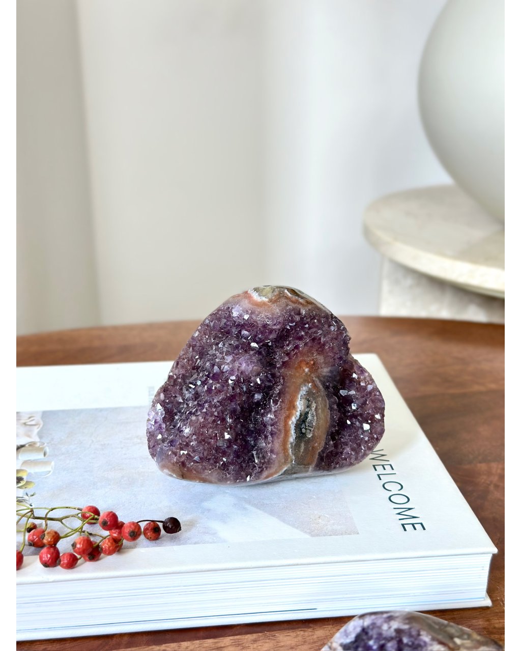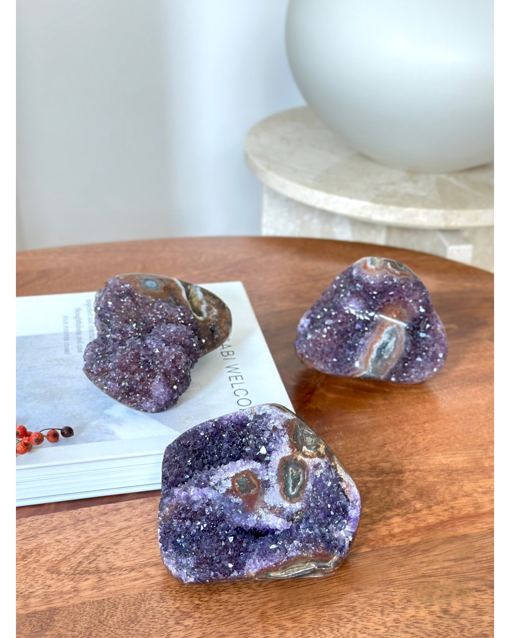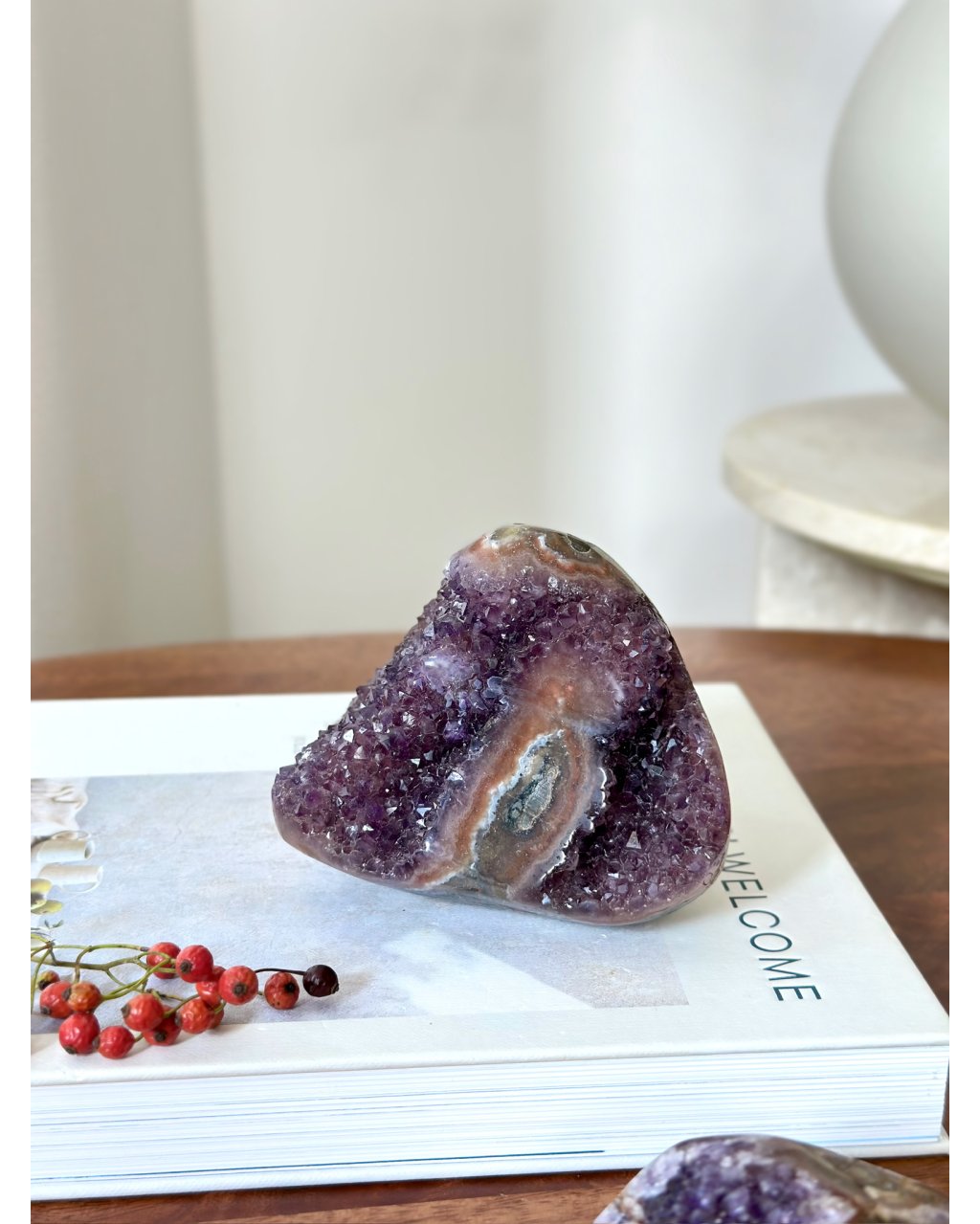 Očista: opláchněte pod proudem vlažné vody, nebo v misce s vodou společně s křišťálem, můžete také použít kouř z vykuřovadla, poté nabijte ve stínu, aby neztratil svou fialovou barvu