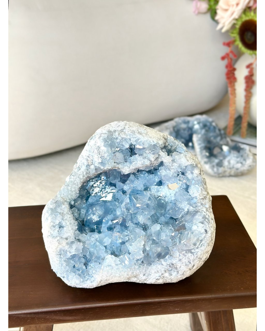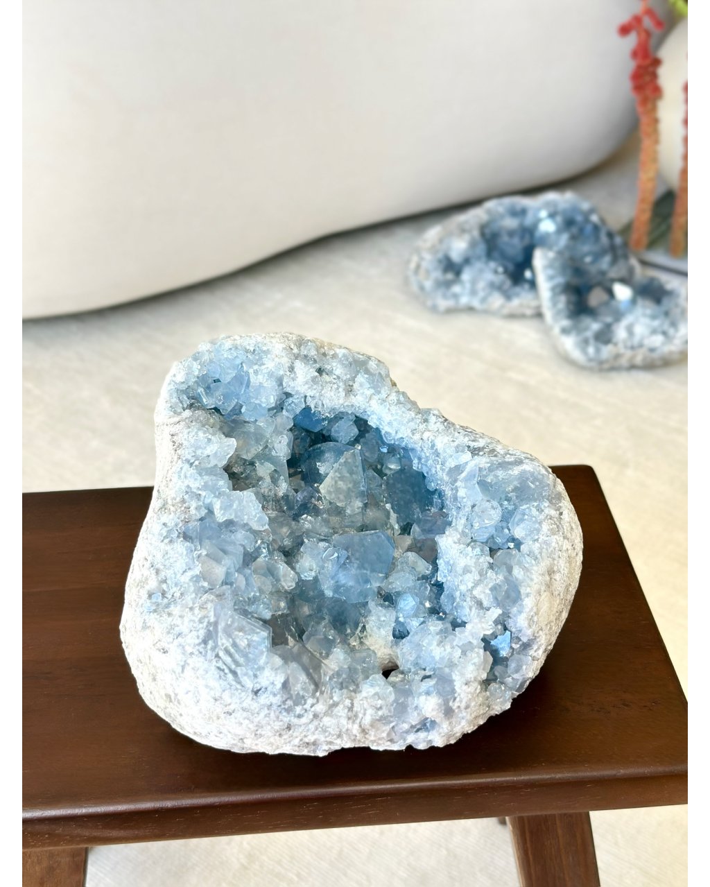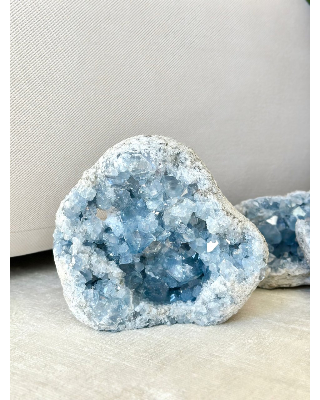 Objevte jedinečnou energii celestýnu, minerálu, který patří mezi skutečné poklady přírody. Tato sada přináší křišťálově čisté krystaly s výjimečně hlubokou modrou barvou.