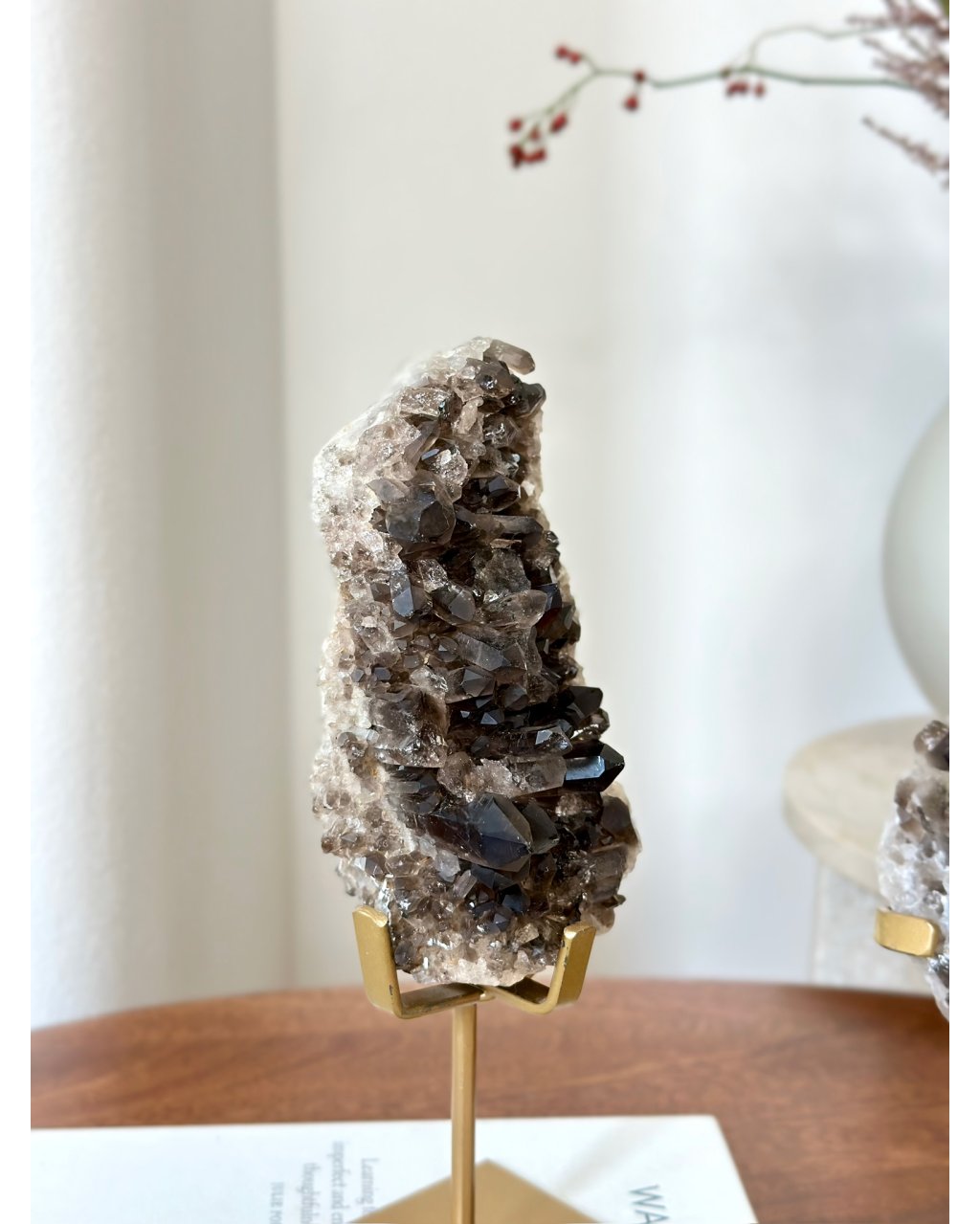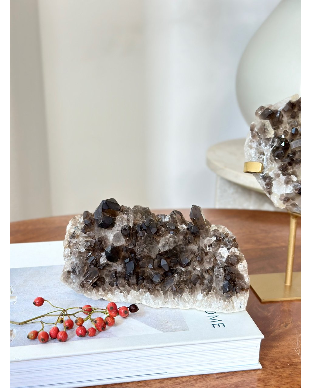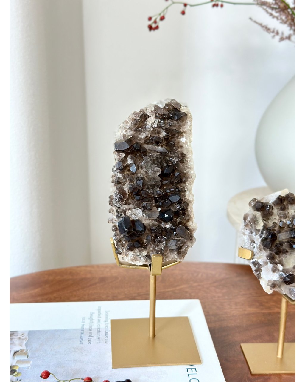 Tato záhněda nejvyšší kvality je jako malé město světla - krystaly jsou poseté po celé délce, třpytí se a září jako domy, ulice a náměstí v mikroskopickém vesmíru, který můžete držet v rukou. Každý krystal nese vlastní energii, a společně tvoří harmonický celek, který podporuje seberealizaci, vnitřní klid a propojení s vyšším vedením.