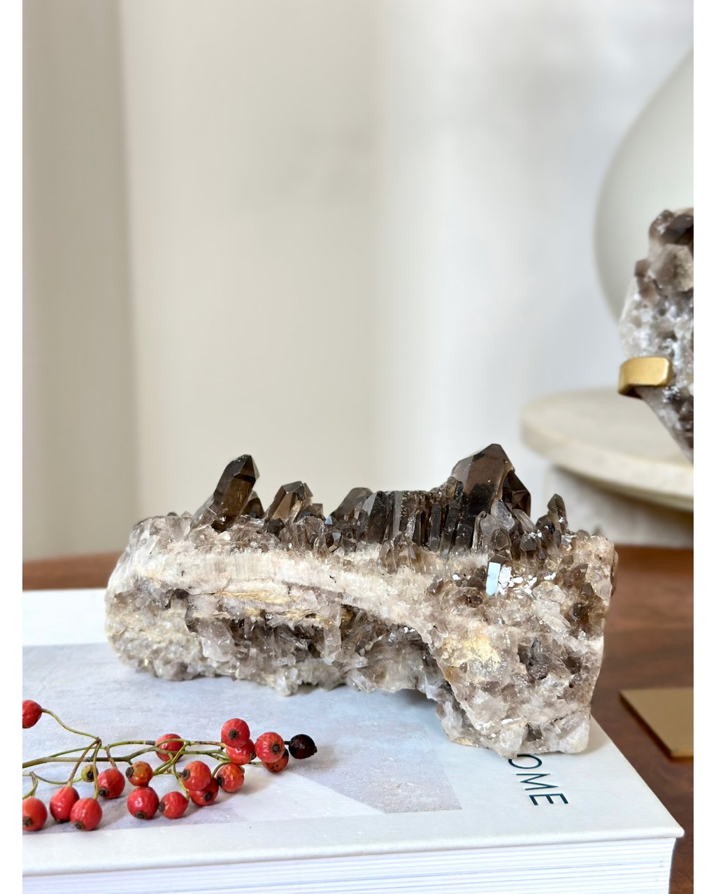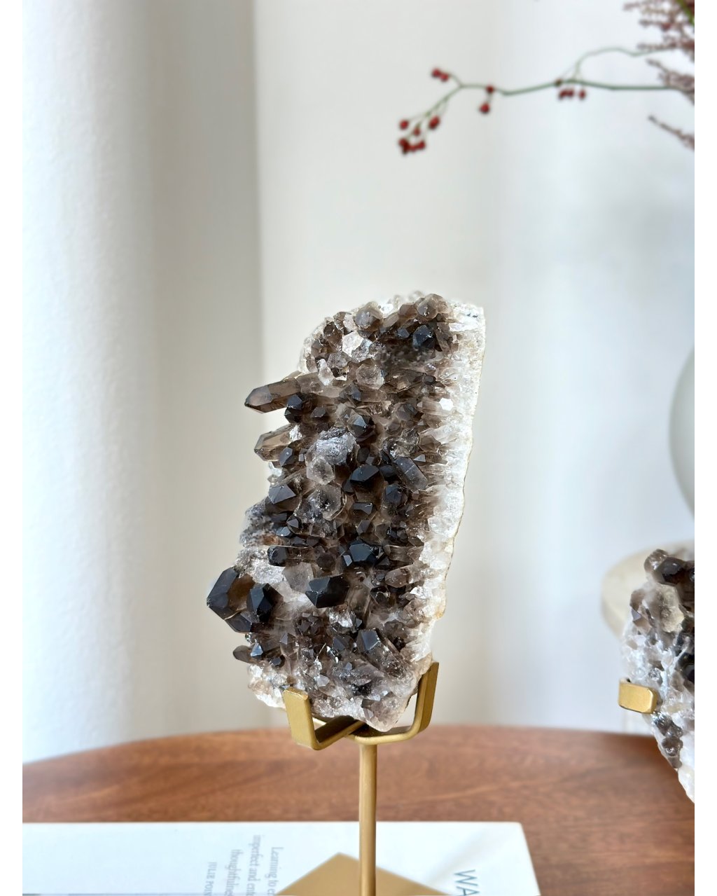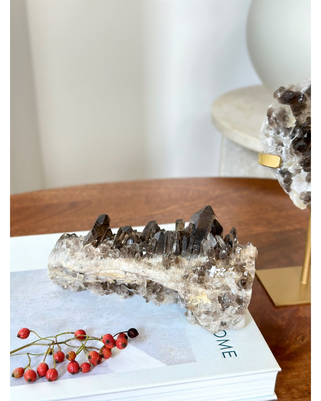 Tato záhněda nejvyšší kvality je jako malé město světla - krystaly jsou poseté po celé délce, třpytí se a září jako domy, ulice a náměstí v mikroskopickém vesmíru, který můžete držet v rukou. Každý krystal nese vlastní energii, a společně tvoří harmonický celek, který podporuje seberealizaci, vnitřní klid a propojení s vyšším vedením.