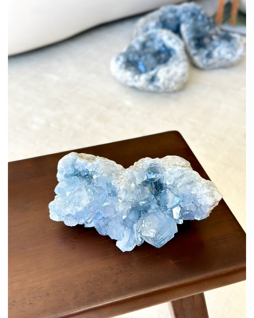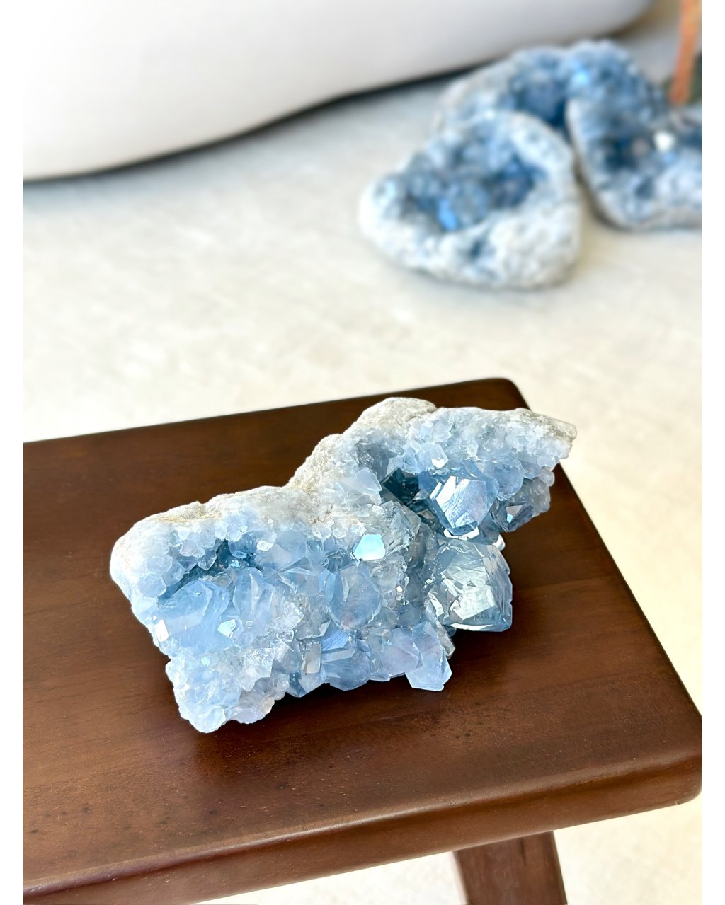 Objevte jedinečnou energii celestýnu, minerálu, který patří mezi skutečné poklady přírody. Tato sada přináší křišťálově čisté krystaly s výjimečně hlubokou modrou barvou.