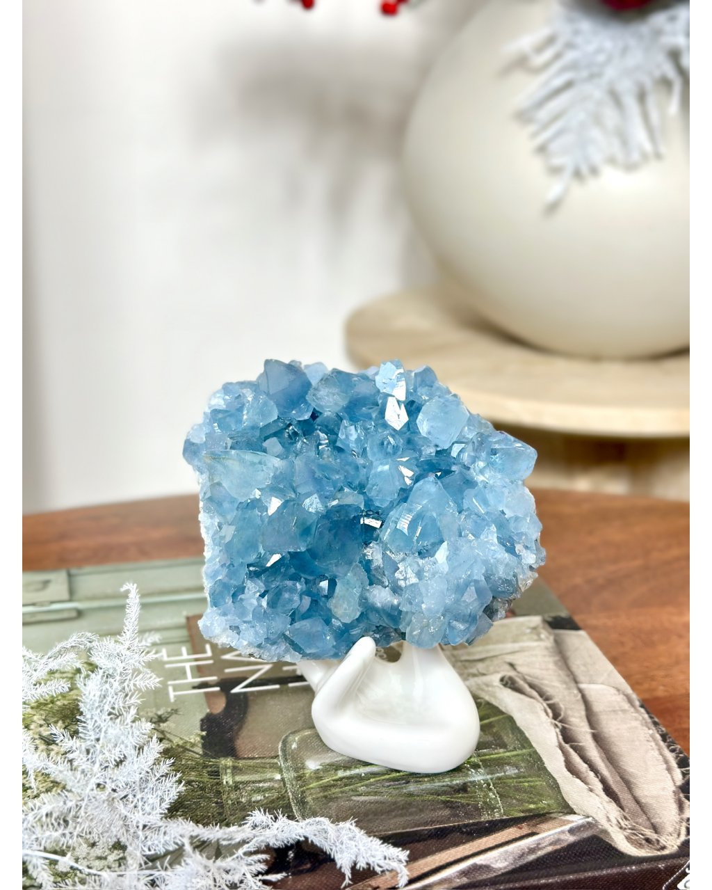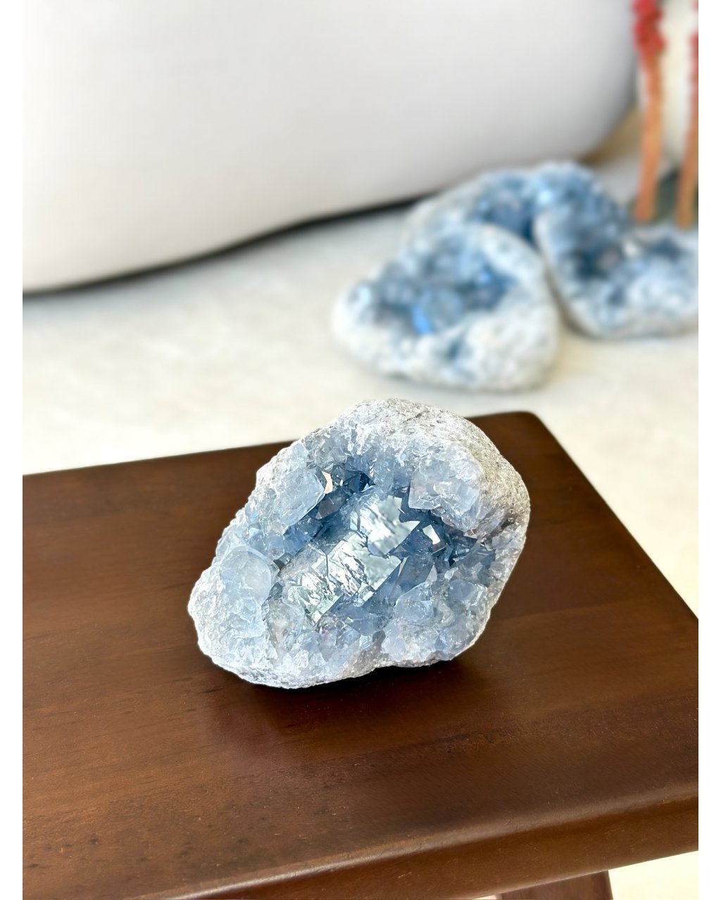 Celestýn je ceněn nejen pro svou krásu, ale také pro svou jemnou a povznesenou energii. Tradičně je spojován s klidem, duchovní inspirací a otevřením vyššímu vědomí. Díky své andělské modři působí uklidňujícím dojmem a vytváří atmosféru míru a harmonie. Celestýn v sobě nese vibraci, která připomíná ticho mezi hvězdami. Jeho modré krystaly nejsou jen krásou pro oči, ale jemným mostem k vnitřnímu světu, kde se vědomí noří do klidu a lehkosti. Když se s ním člověk spojí, otevírá se prostor, v němž myšlenky ztrácejí svou tíhu a zůstává jen čistá přítomnost. Tento kámen dokáže navodit stav, kdy se člověk necítí oddělený od světa, ale spíše jako součást širšího, tichého a nekonečného bytí.