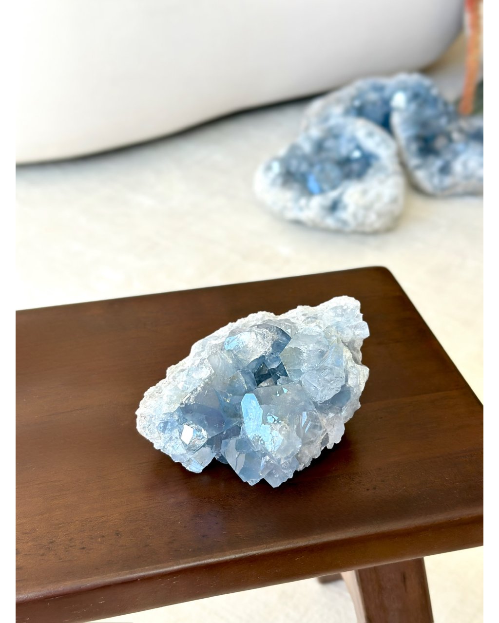 Celestýn je ceněn nejen pro svou krásu, ale také pro svou jemnou a povznesenou energii. Tradičně je spojován s klidem, duchovní inspirací a otevřením vyššímu vědomí. Díky své andělské modři působí uklidňujícím dojmem a vytváří atmosféru míru a harmonie. Celestýn v sobě nese vibraci, která připomíná ticho mezi hvězdami. Jeho modré krystaly nejsou jen krásou pro oči, ale jemným mostem k vnitřnímu světu, kde se vědomí noří do klidu a lehkosti. Když se s ním člověk spojí, otevírá se prostor, v němž myšlenky ztrácejí svou tíhu a zůstává jen čistá přítomnost. Tento kámen dokáže navodit stav, kdy se člověk necítí oddělený od světa, ale spíše jako součást širšího, tichého a nekonečného bytí.