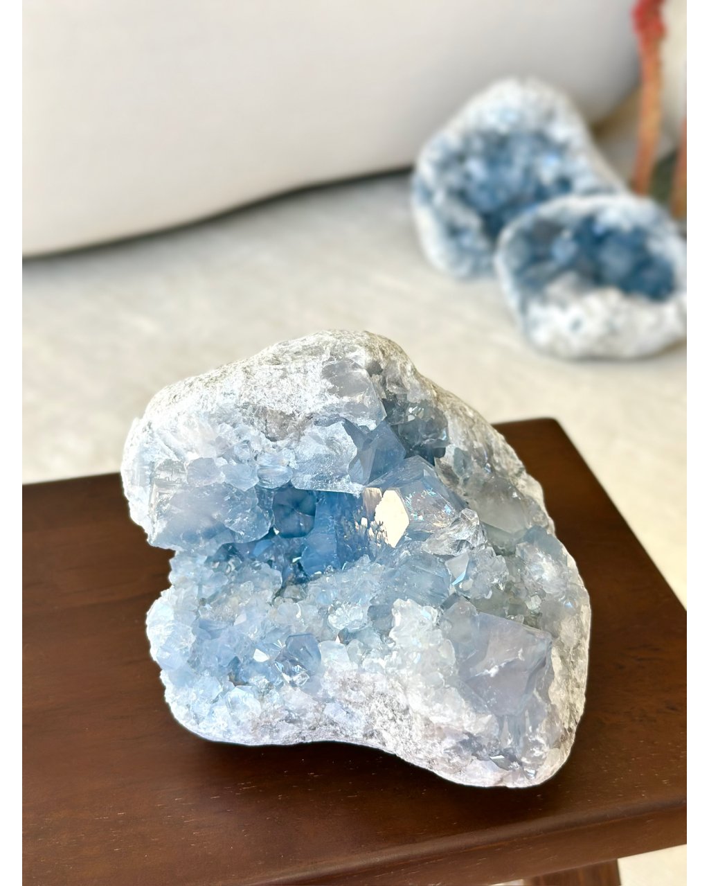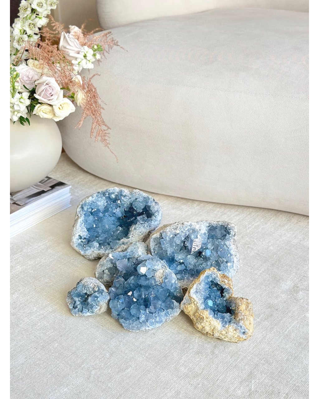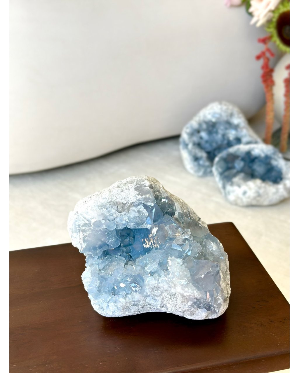 Celestýn je také mocným prostředníkem pro hluboké meditace, pomáhá uklidnit mysl a otevírá ji pro spojení s vyššími říšemi a jemnohmotnými energiemi. Jeho jemná, nebeská vibrace přináší do života pocit míru, lásky a duchovní čistoty, čímž umožňuje harmonizaci těla, mysli a ducha v dokonalé rovnováze.