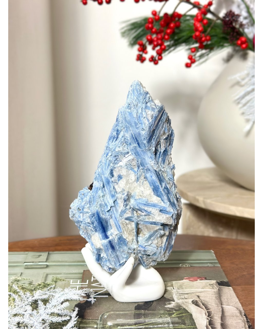 Nádherný velký kus kyanitu vysoké kvality ve tvaru křídel, který je propojený s bytostmi modrého paprsku jako Blue Avian, Sírius, Plejády, Arkturiáni, kteří s námi pracují a pomáhají nám na naší cestě a v komunikaci s vyšší sférou, u mnoho lidí jsou jejich novými průvodci.
