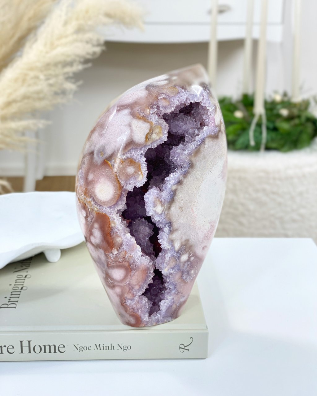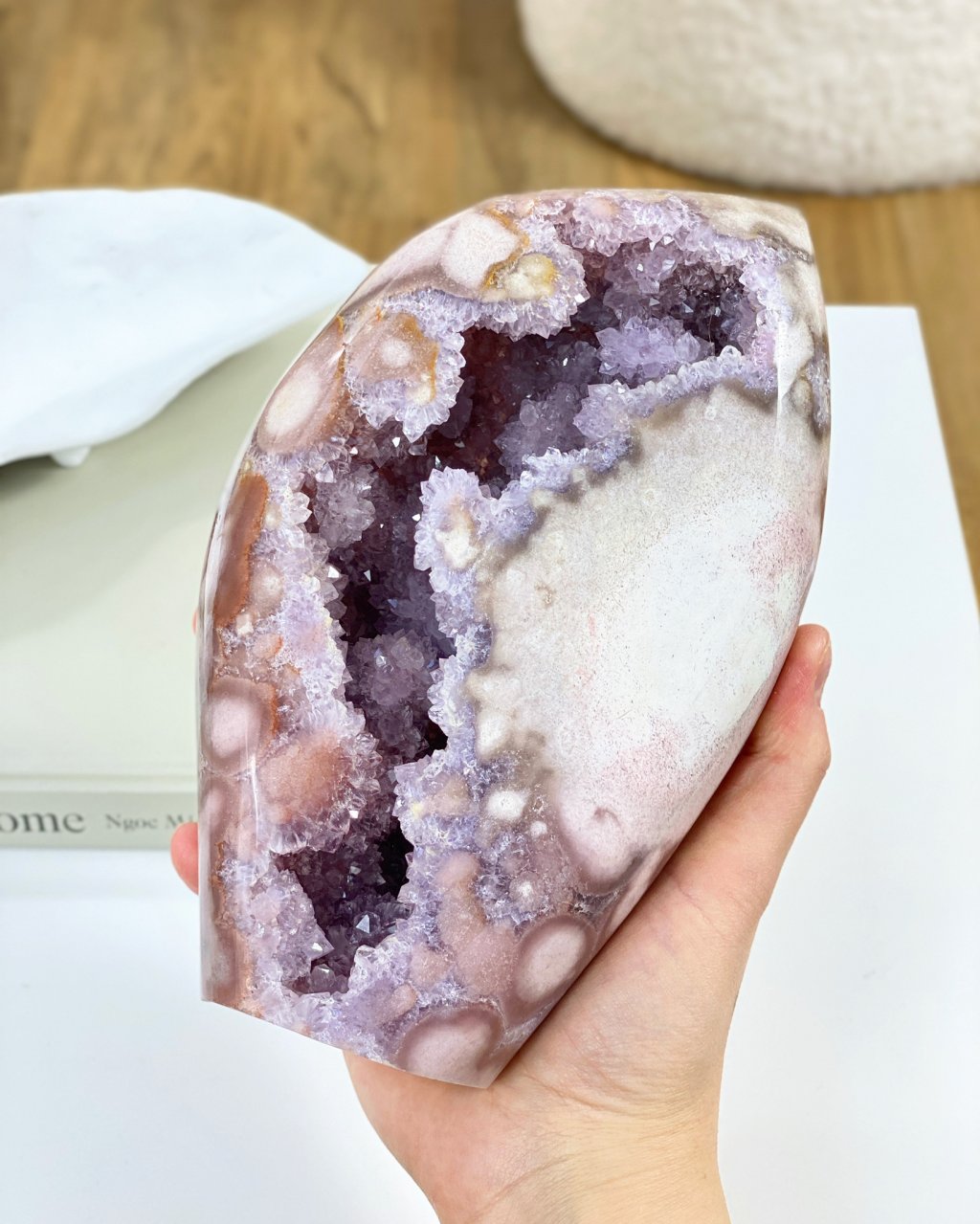 Leštěná geoda z růžového ametystu Brazílie 1,9kg AAA