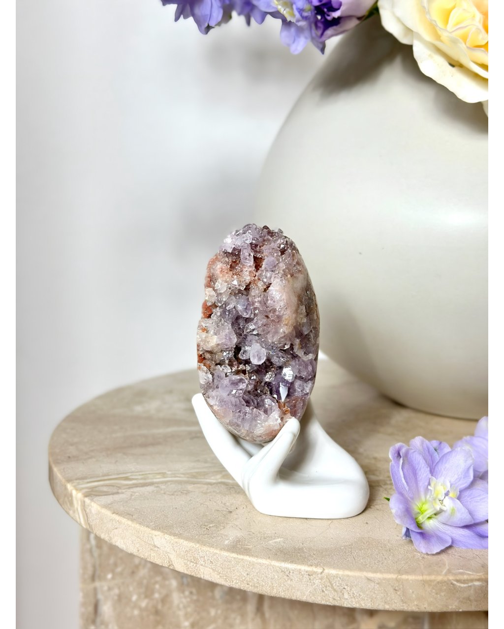 Zvýšená osobní moc! Když máte růžový ametyst nablízku, je pravděpodobné, že se budete cítit obnovený, vyvážený a sladěný se svými aspiracemi a vyšším cílem. Jasnost je na hyperpohonu a pochybnost se zmenšuje. Mluvíme tady o dokonalé kombinaci pro osobní růst!