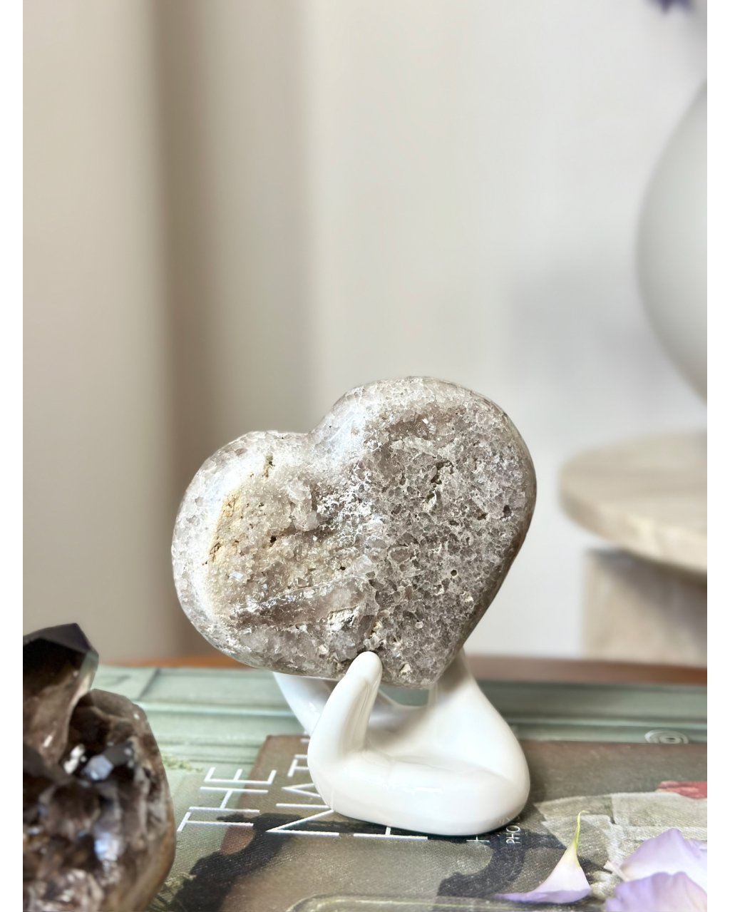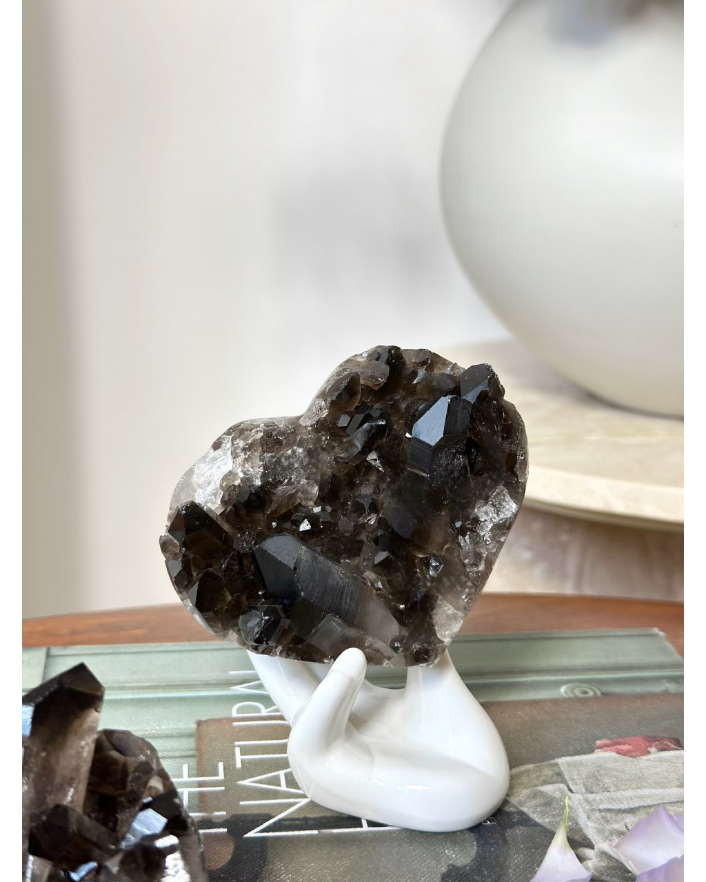 Tvar srdce dodává této záhnědě jemný kontrast, propojuje silnou uzemňující energii s láskou, přijetím a vnitřním klidem. Tento krystal je často vnímán jako ochránce srdce, který pomáhá rozpouštět staré strachy, stres a těžké emoce, aniž by narušoval přirozené hranice člověka. Záhněda v této podobě podporuje pocit bezpečí, vnitřní rovnováhu a schopnost být plně přítomný tady a teď. Je ideální pro ty, kdo hledají hluboké uzemnění, stabilitu a klidnou, zemitou lásku, která neoslňuje, ale drží a nese.