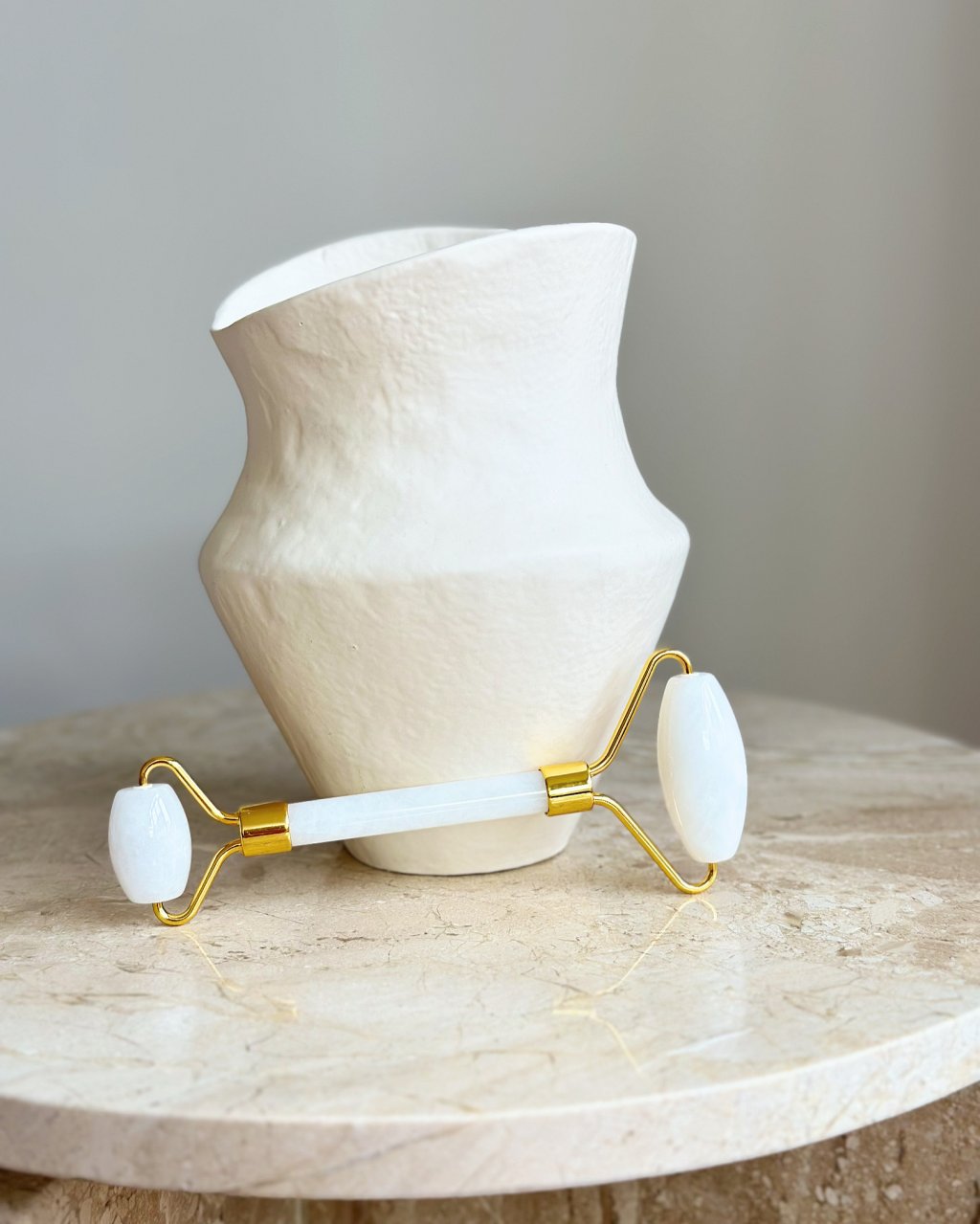 Face roller, díky chladu kamene, stahuje rozšířené póry a pleť na první pohled okamžitě rozzáří. Pokud je kámen zahřátý, zkuste ho na chvíli položit do lednice a poté masírovat. Jeho elegantní provedení a zlatá barva kovu vás okouzlí na první pohled. Každý z face rollerů je jedinečný originál a díky přírodnímu kameni má také každý trošku jinou barvu a strukturu.