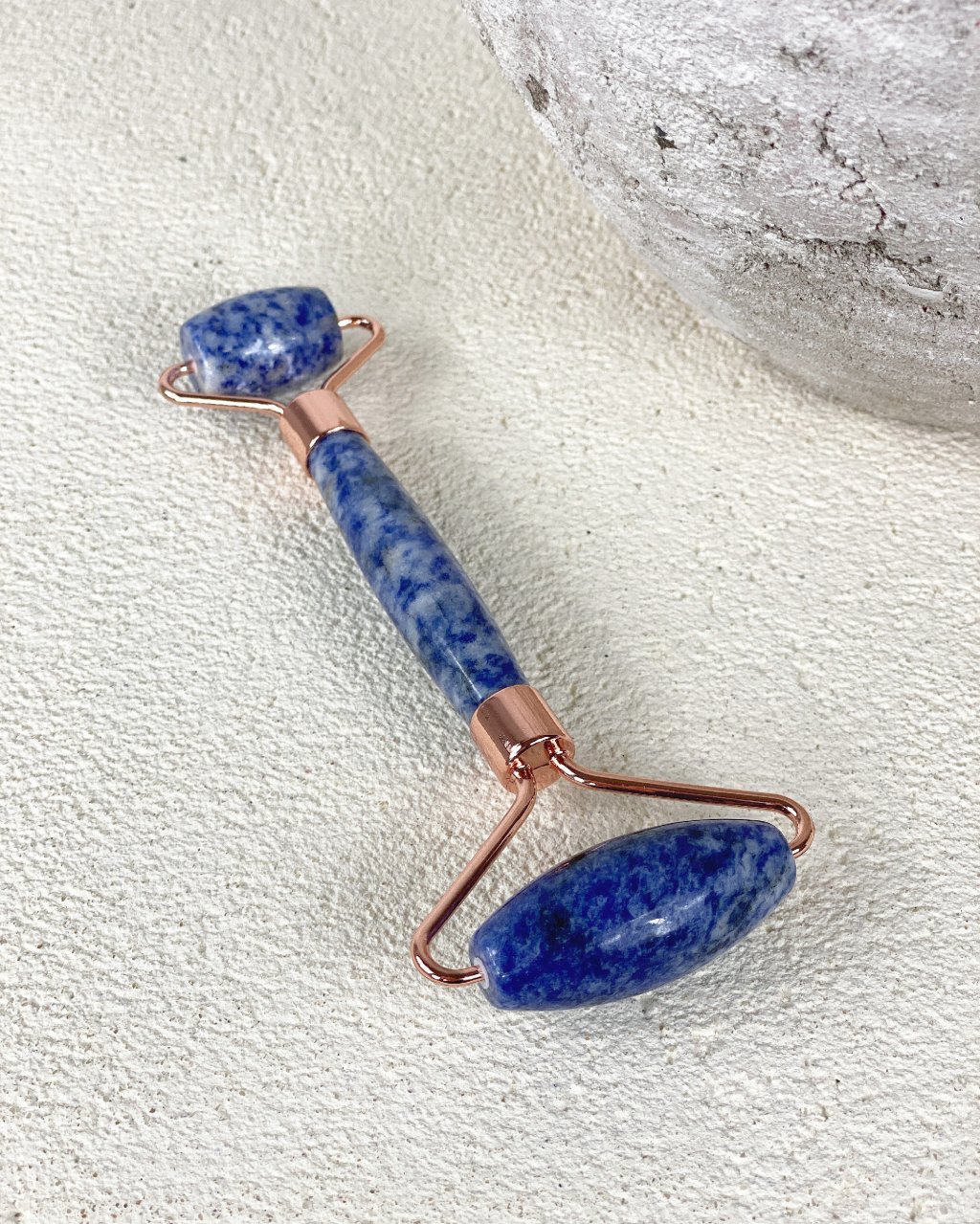 Masážní váleček z pravého přírodního polodrahokamu sodalit. Prastarý ajurvédský nástroj k lymfatické masáži obličeje, krku a dekoltu. Pomáhá redukovat otoky, zlepšuje cirkulaci krve, rozproudí lymfu a pomáhá kosmetickým krémům nebo sérům pronikat hlouběji do pleti Pravidelným používáním zmírňuje vzhled tzv. druhé brady a černých kruhů pod očima, dochází ke zlepšení pružnosti pleti, redukci vrásek, oteklosti. Díky face rolleru si můžeme mírnou lymfatickou drenáž provádět pravidelně doma a zabránit tak otokům obličeje, očí nebo dokonce bolestem hlavy.