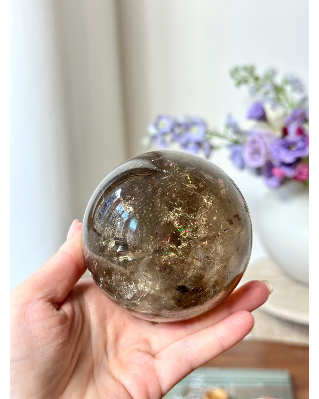 Záhněda leštěná koule s duhou Brazílie 781g AAA