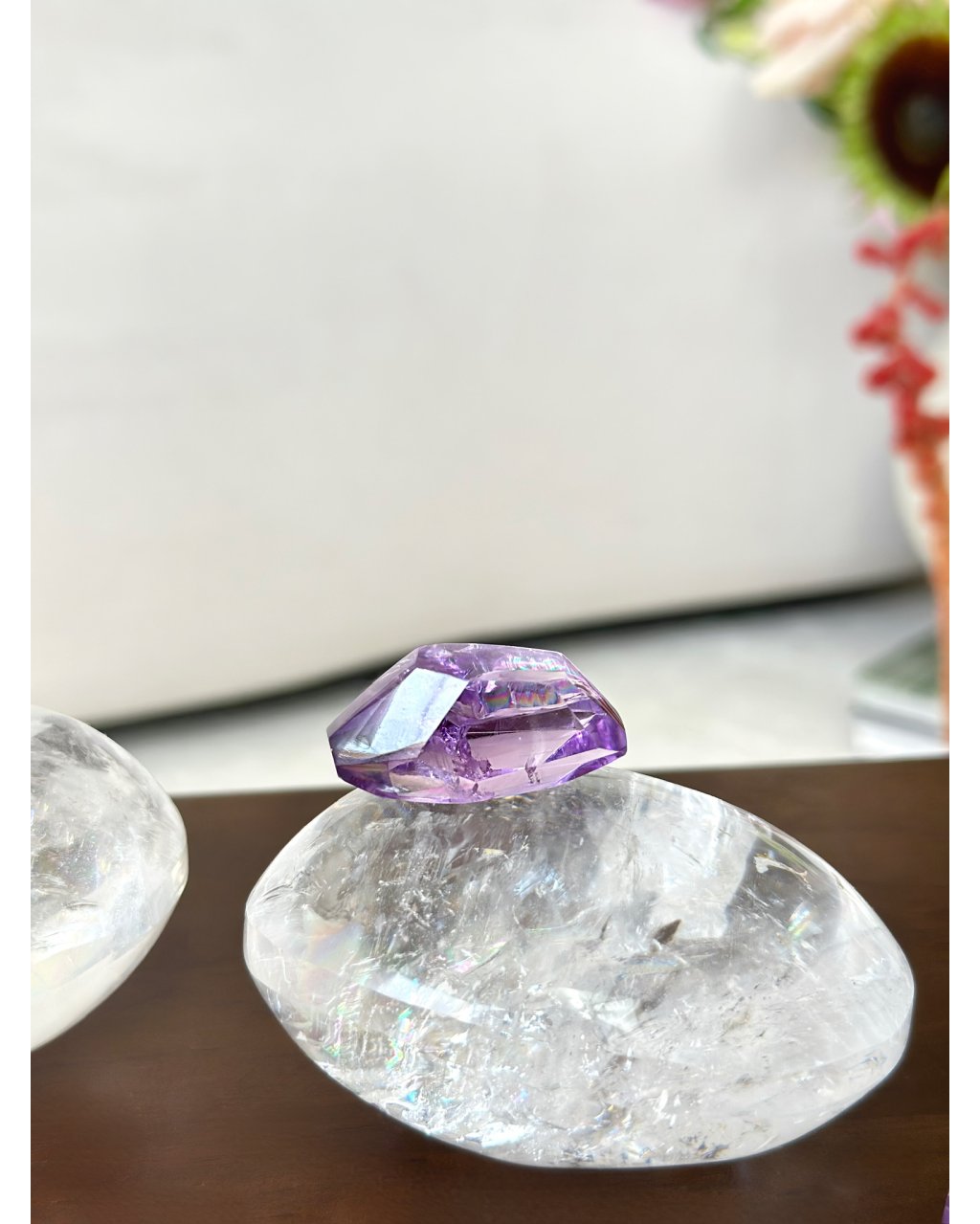 Očista: ametrín čistíme stejně jako ostatní křemenné druhy, pod proudem vody, nebo přes noc v misce, poměrně dobře snáší přímé slunce ale doporučujeme raději stinné místo