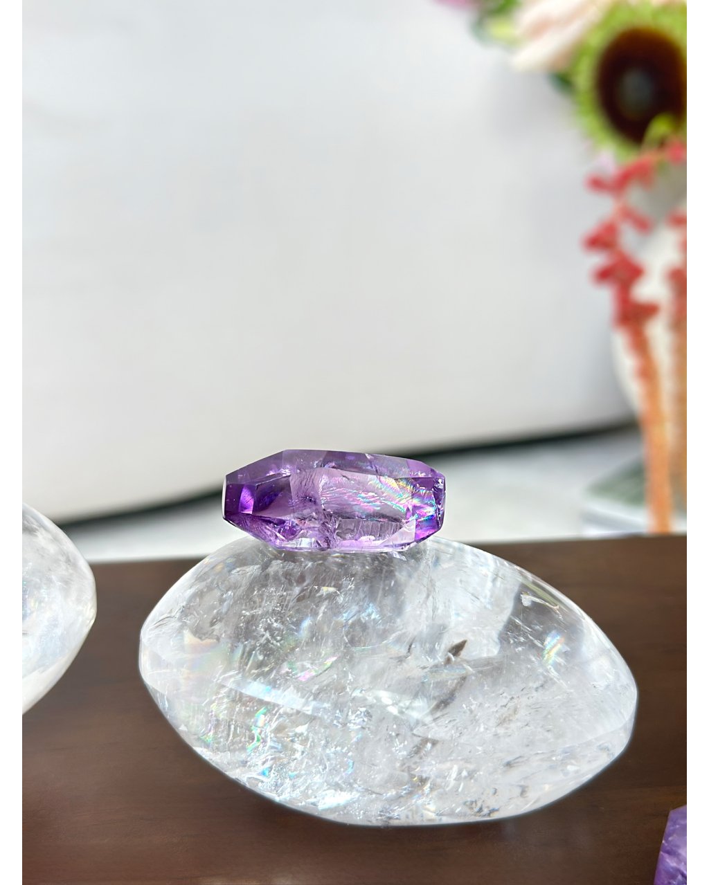 Očista: ametrín čistíme stejně jako ostatní křemenné druhy, pod proudem vody, nebo přes noc v misce, poměrně dobře snáší přímé slunce ale doporučujeme raději stinné místo