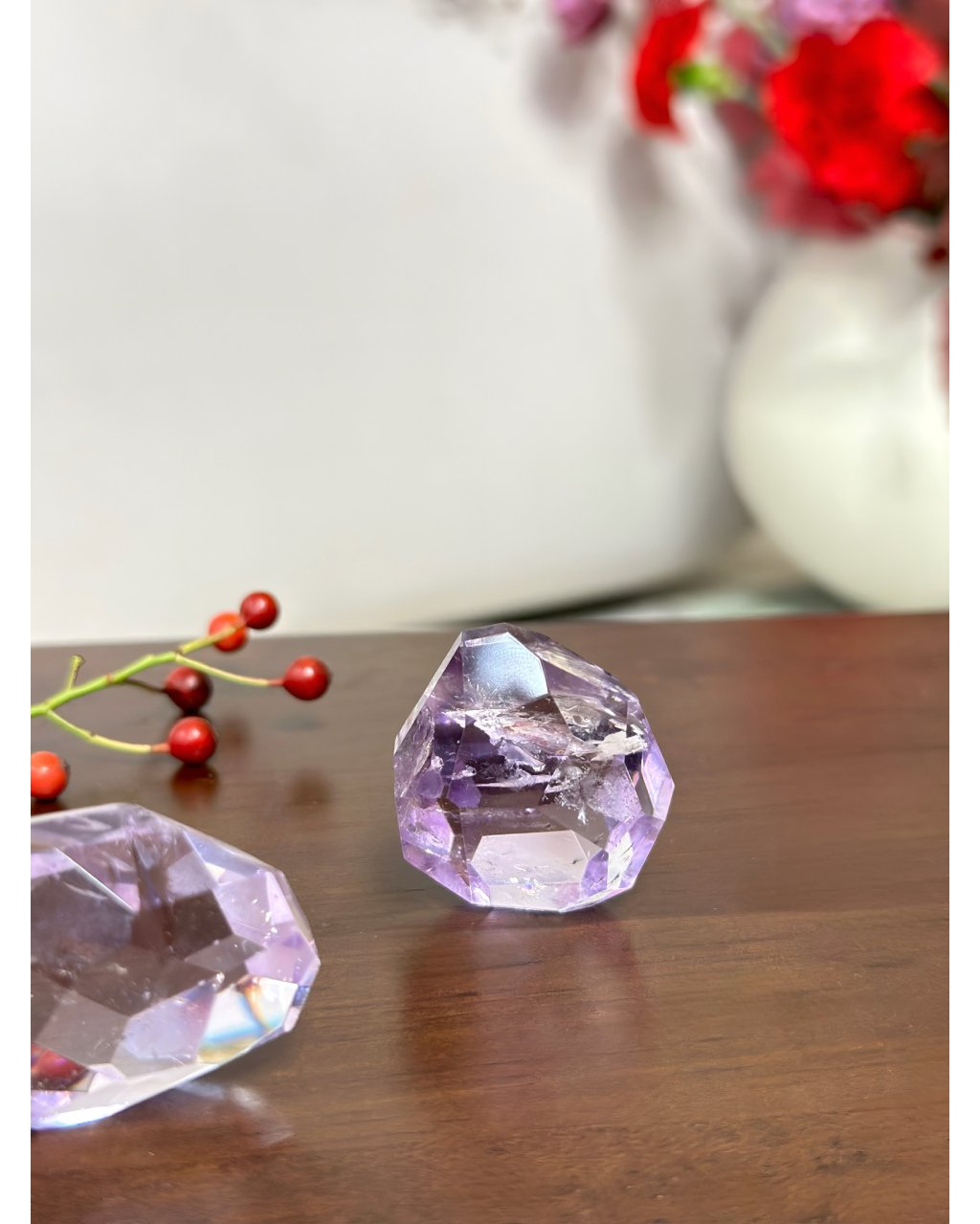 Očista: ametrín čistíme stejně jako ostatní křemenné druhy, pod proudem vody, nebo přes noc v misce, poměrně dobře snáší přímé slunce ale doporučujeme raději stinné místo