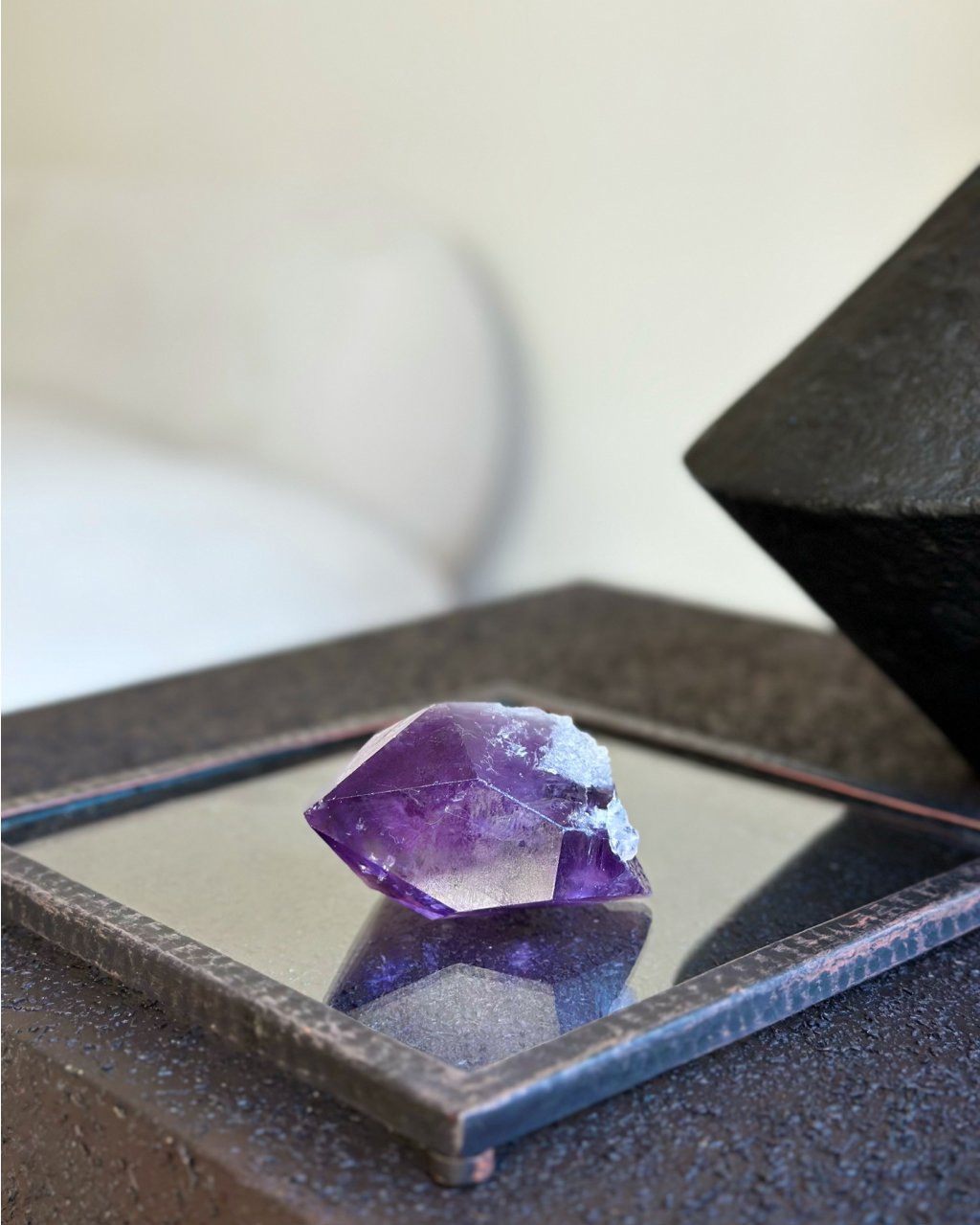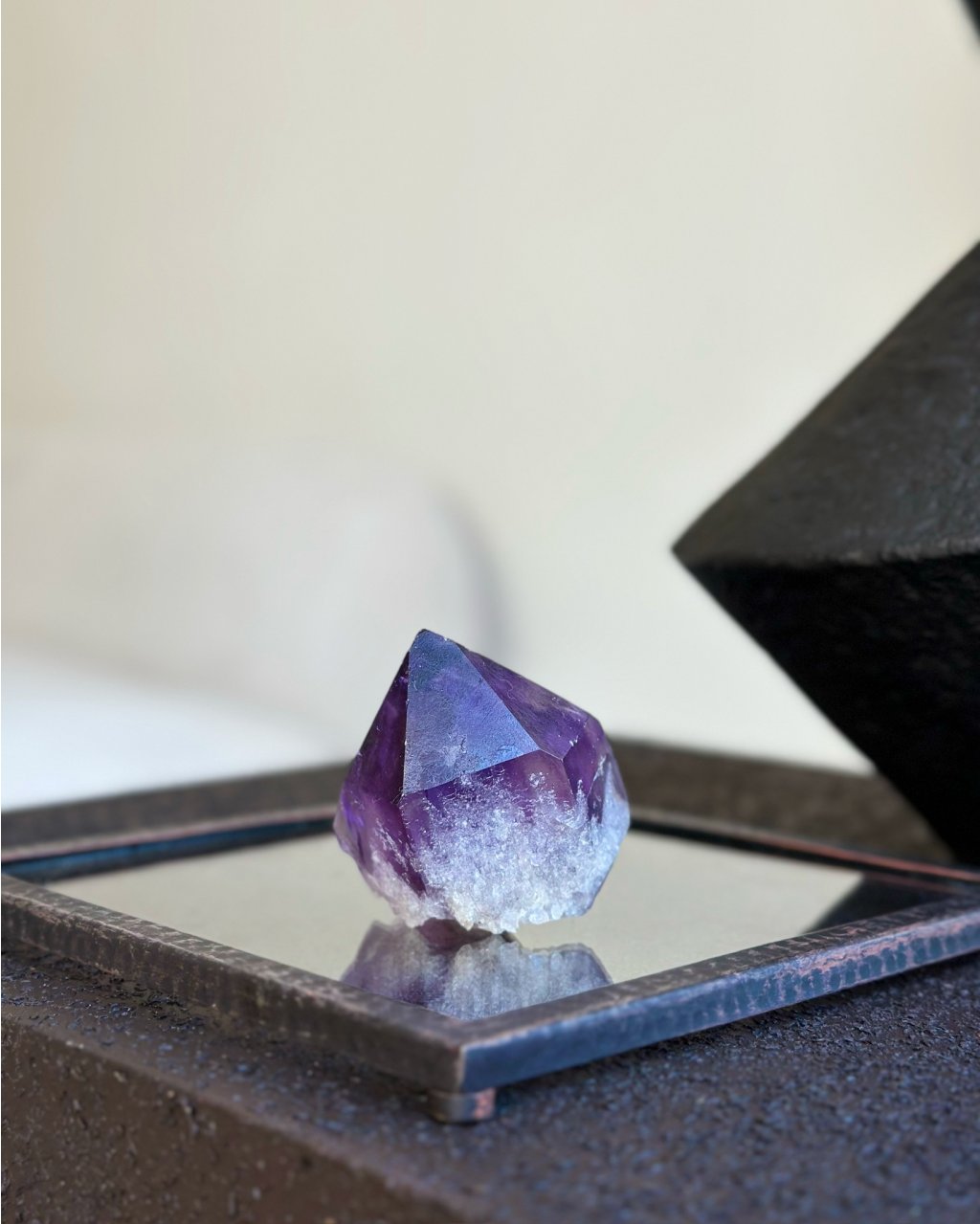 Tento nádherný krystalový surový ametyst sem přichází s vysokým věděním jako bytost, která předává duchovní sílu, je strážcem záznamů, nese v sobě fantomy a zároveň nese také energetický otisk, spínač pro vyslání určitých energií v důležité dny (portálové dny, slunovraty - rovnodennosti) Tím vším, kým jsme, tím vším, co jsme byli, co jsme prožili, jaké schopností a vědomosti jsme nesli - rychlou manifestaci, dar léčení, alchymie, stahování nových technologií, telepatie, převibrování věcí, komunikace s jemnohmotnější sférou. To vše můžeme cítít jako dary uvnitř nás, ale také cesty, které můžeme objevovat, které jsou nám k dispozici, i průvodci čekají až otevřeme nové témata, nové obzory sebe sama a propojíme se s nekonečnem.