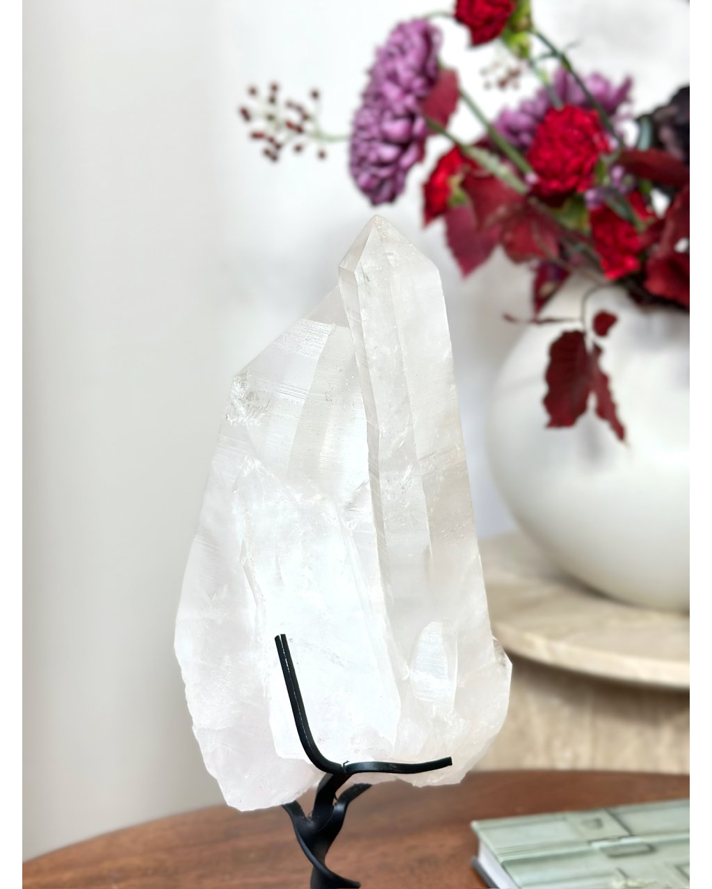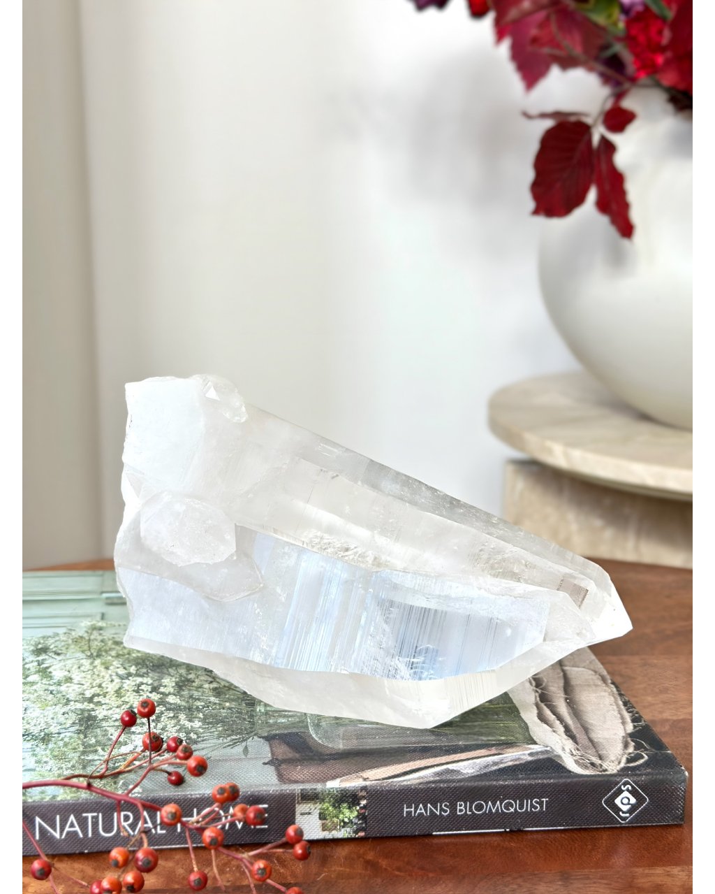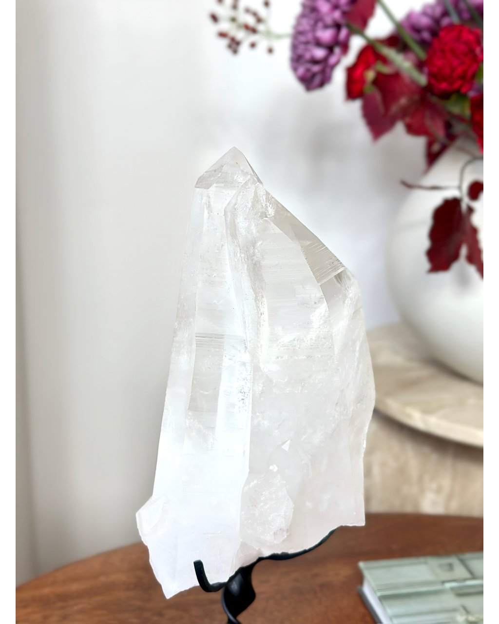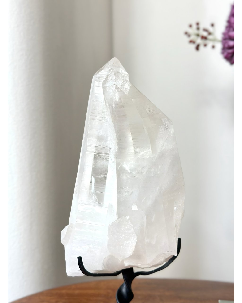 Tento kus je tak čistý, tak světelný a tak hluboký, že v prostoru okamžitě vytváří pocit klidu a moudré přítomnosti. Je to krystal, který nezáří jen světlem, ale i pamětí a tiše, trpělivě připomíná, že pravé světlo je vždy hlubší, než se na první pohled zdá.