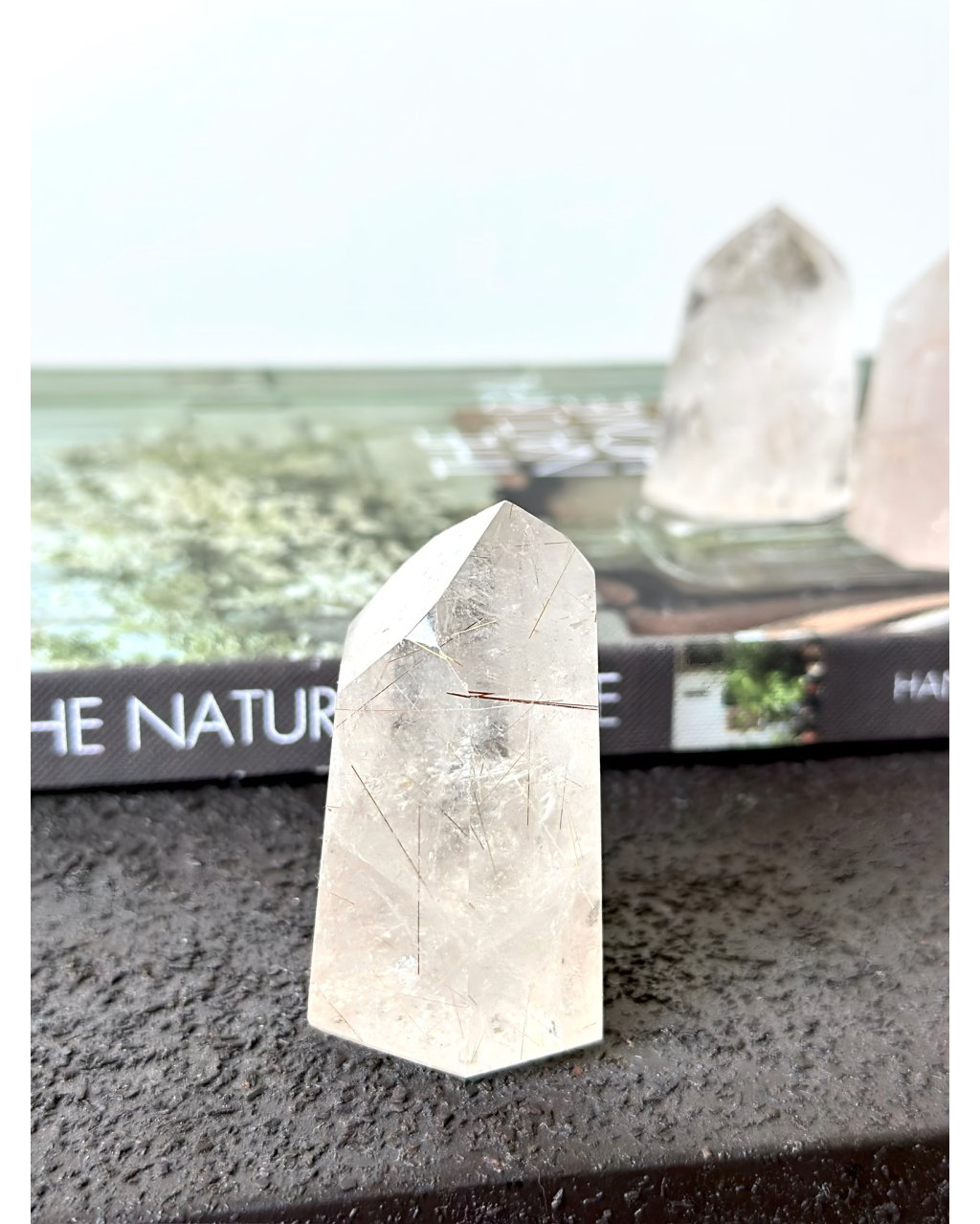 Křišťál s rutilem je výjimečný minerál, který se na první pohled liší od běžného křišťálu jemnými, zlatavými až měděnými jehličkami rutilu, připomínajícími zamrzlé paprsky světla. Tento kámen si nese pověst krystalického orákula, průvodce vyššími vhledy, osudem a kosmickou moudrostí.