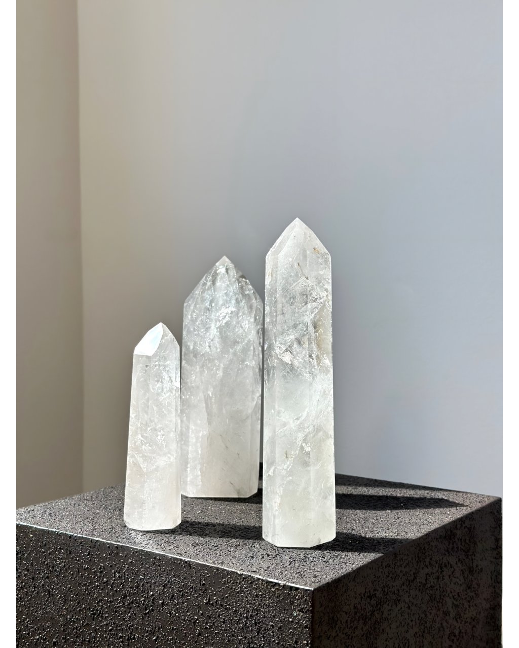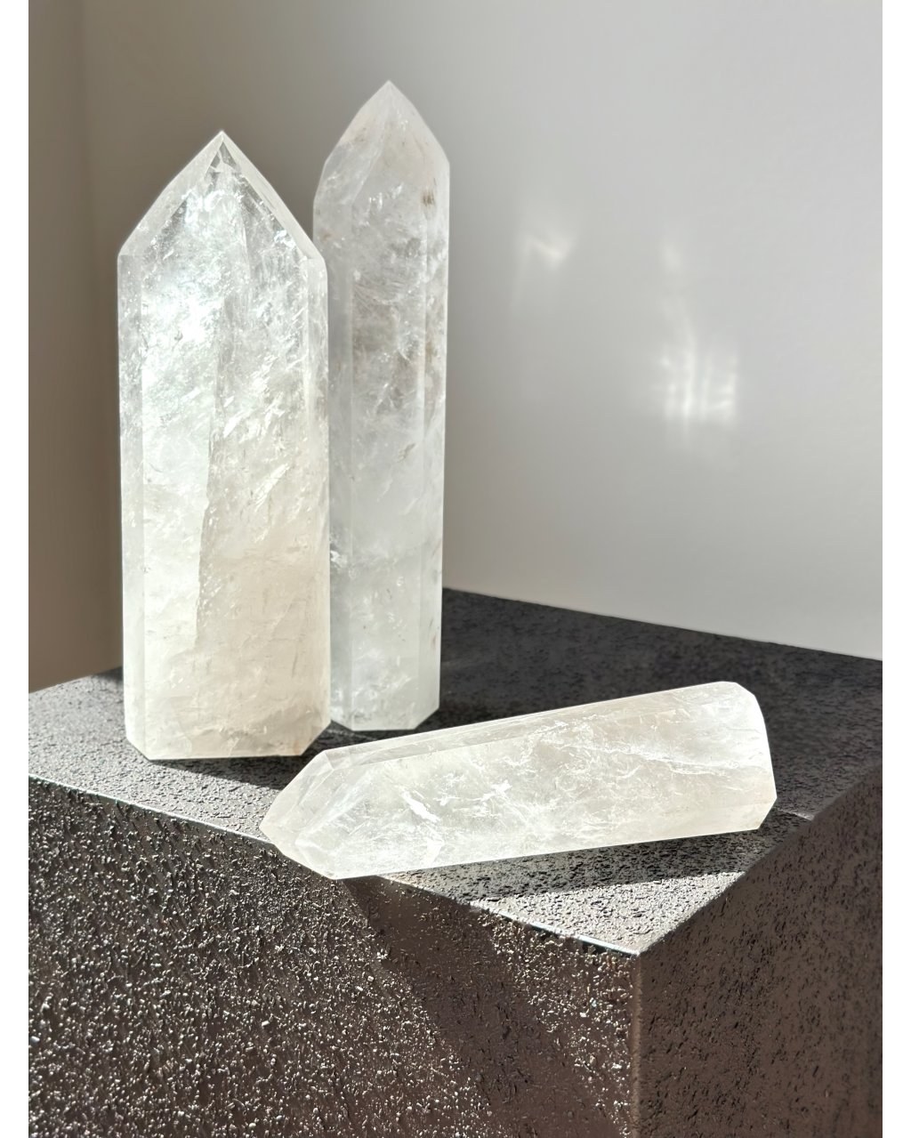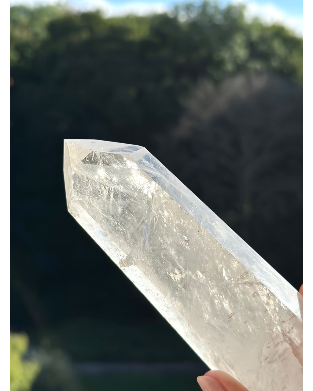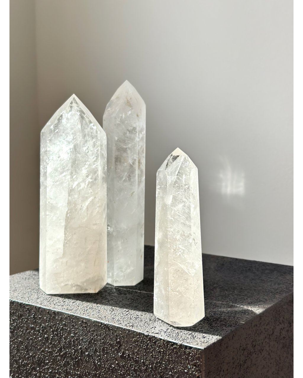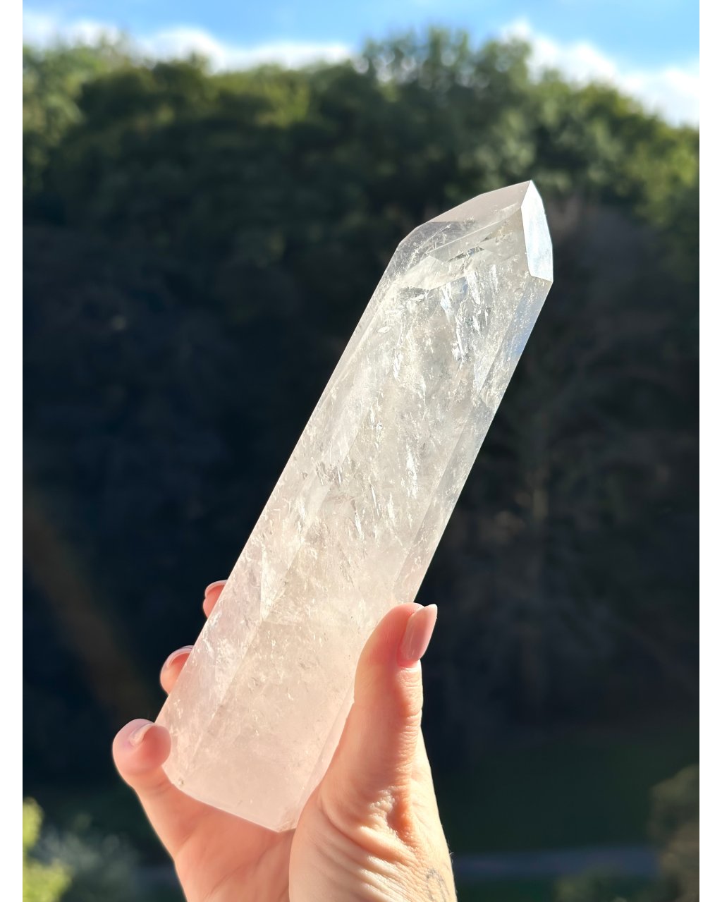 Obelisk z křišťálu nepřináší pouze krásu, ale představuje stojící světlo a kotvu vyšší frekvence v hmotě. Jeho čistota, výška a směřování vzhůru připomínají pradávný záměr Země tvořit, růst a propojovat se se světlem. Je to světelný pilíř a kronika samotného planetárního zrodu.