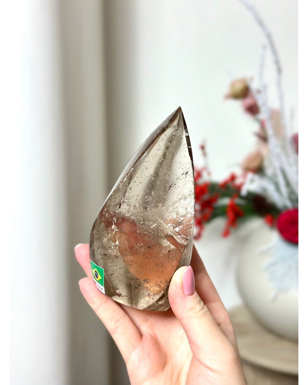 Leštěná záhněda plamen s duhou Brazílie 333g