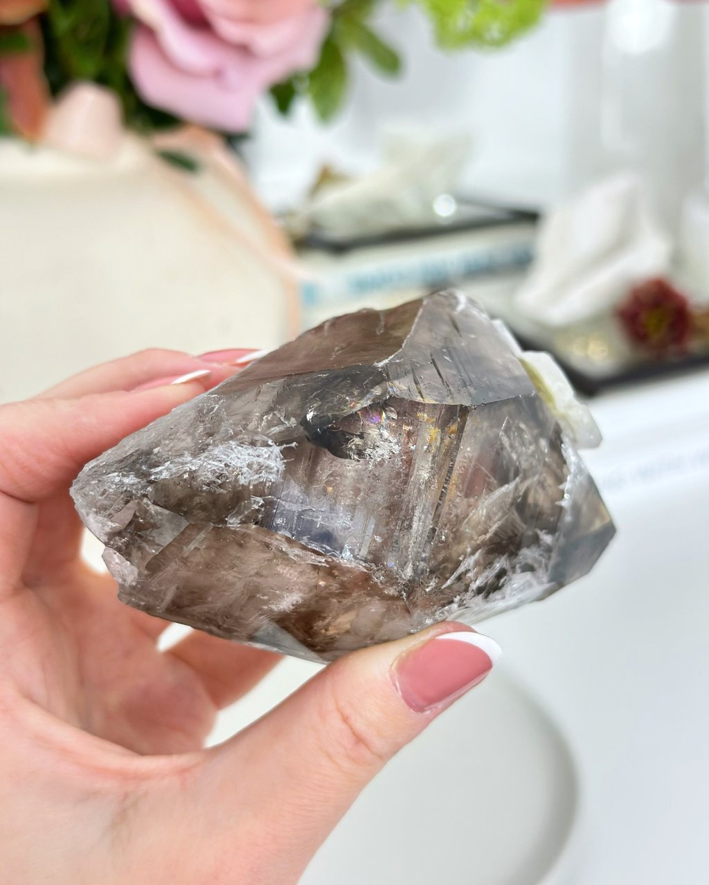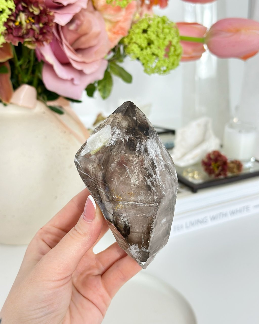 Záhněda elestiální s esencí ametystu krystal Brazílie 453g