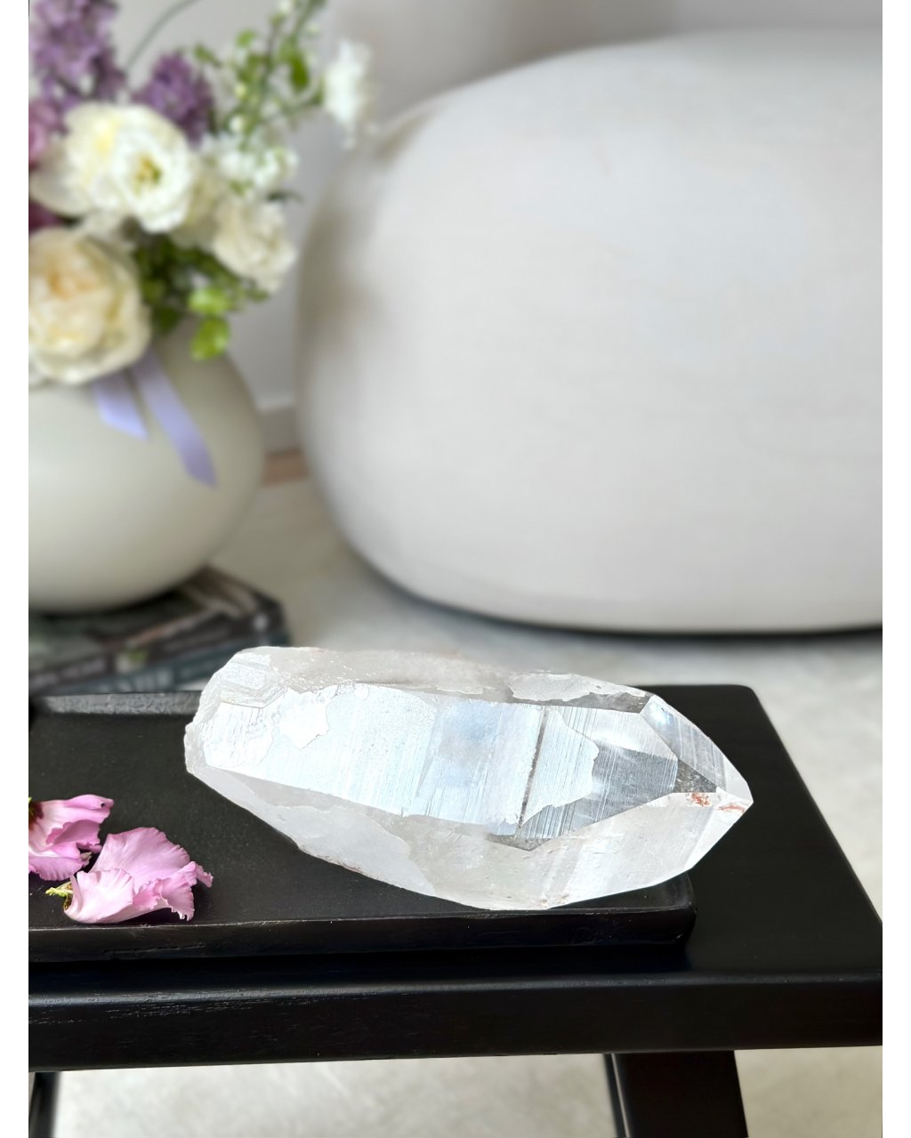 Světelný Lemurian křišťál je jedním z nejčistších nositelů jemné energie, jaké příroda stvořila. V jeho těle jsou jasně patrné horizontální linie, přirozené rytiny, které nejsou náhodným útvarem, ale součástí struktury zápisu. Nazývají se lemurské kódy a jsou vnímány jako energetické informace, které kdysi byly vědomě „uloženy“ do krystalu pro budoucí časy. Když se jich dotkneš, jemně vibrují pod prsty, jako by reagovaly na pozornost.