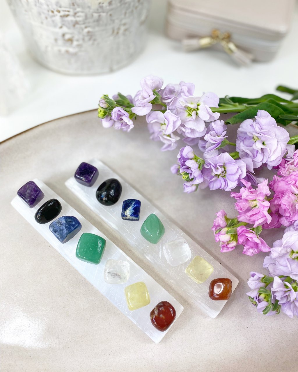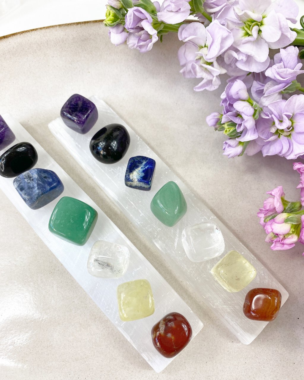 obsah balení : 7ks čakrových kamenů a selenitová destička