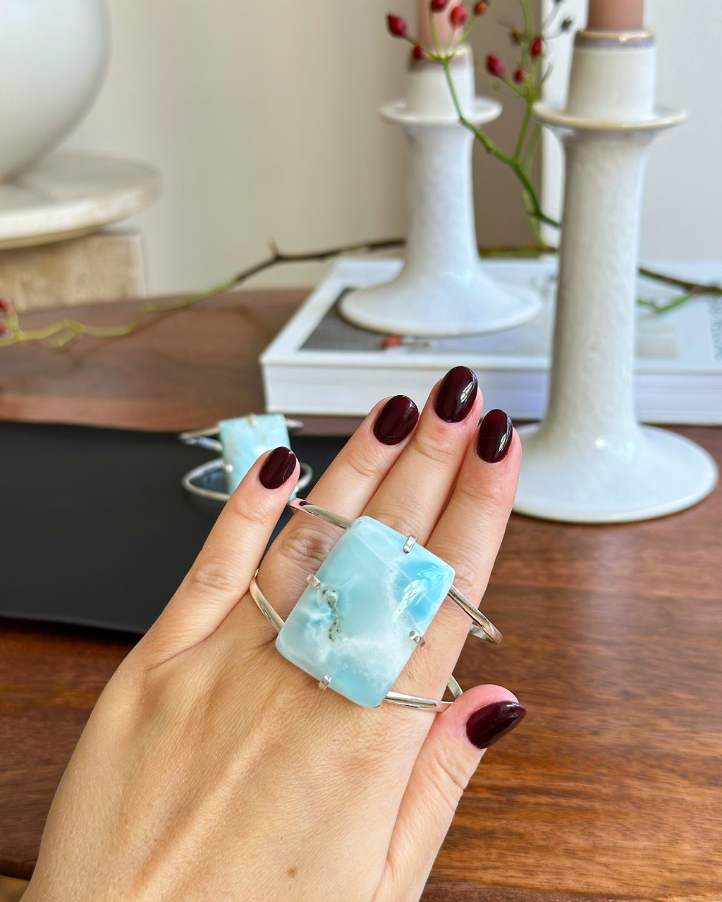 Očista: velmi mu svědčí voda a proto jej vodou čistíme i nabíjíme, ideálně v misce s vodou při úplňkové noci, tímto způsobem si lze vyrobit posvěcenou vodu, nejen, že kámen očistíte, ale vodu z misky, kde byl předtím pár hodin larimar, nevyhazujte, ale uschovejte a můžete ji pak používat k různým obřadům a rituálům