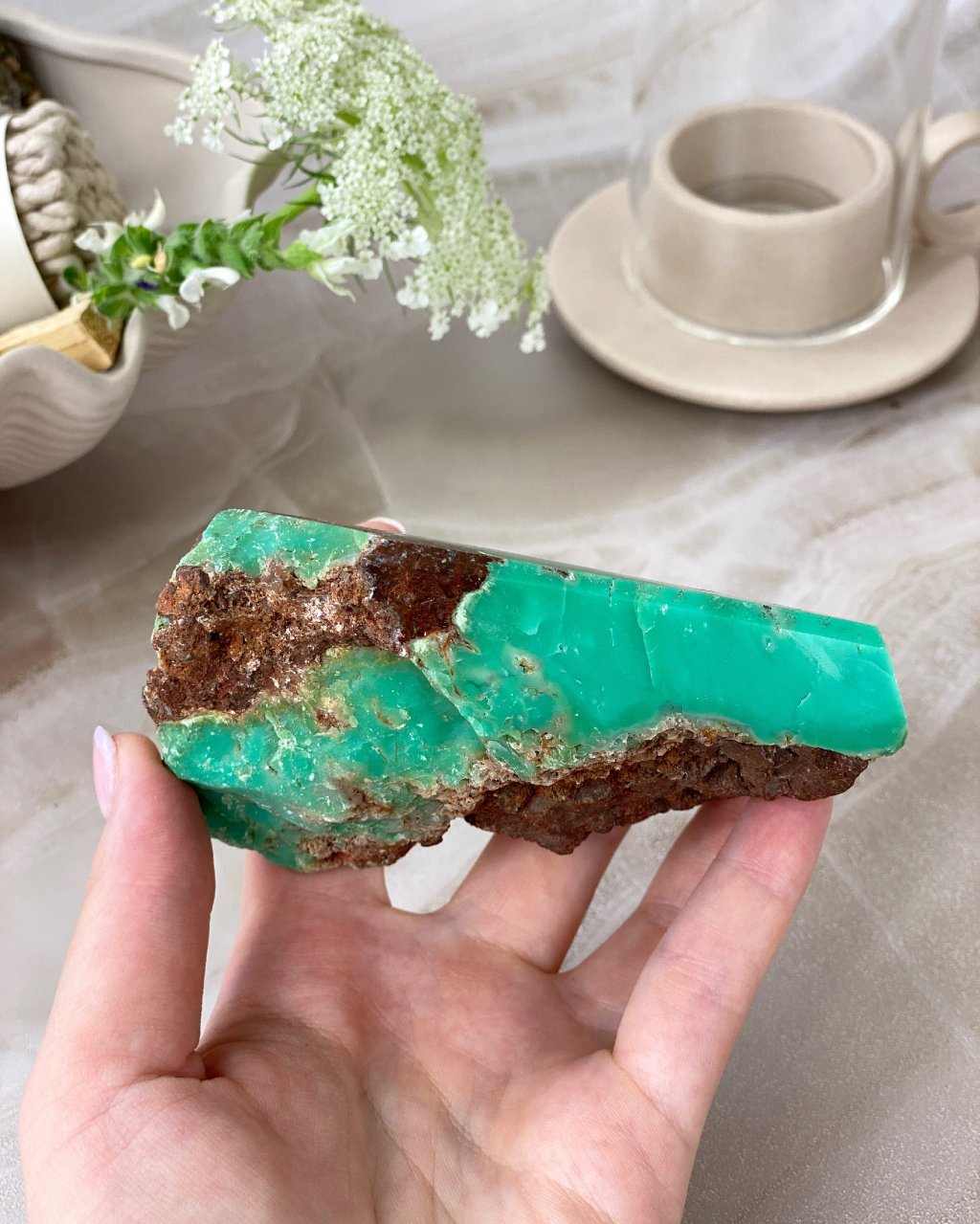 Minerál chryzopras tromlovaný Tanzánie 334g