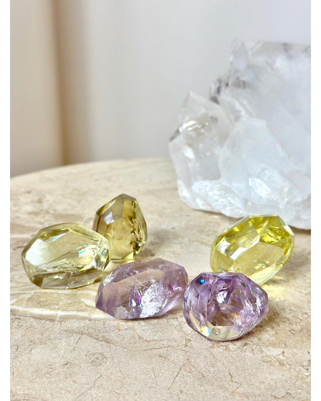 Ve mně se spojila záře a klid; Dokáži probudit vaše vnitřní světlo, které vás bude navádět po správné cestě. Jsem přírodní kombinací ametystu a citrínu. Toto spojení je tak čisté a silné, že mi dovoluje používat k léčení vašeho ducha ty nejvyšší vibrační schopnosti obou dvou krystalů.