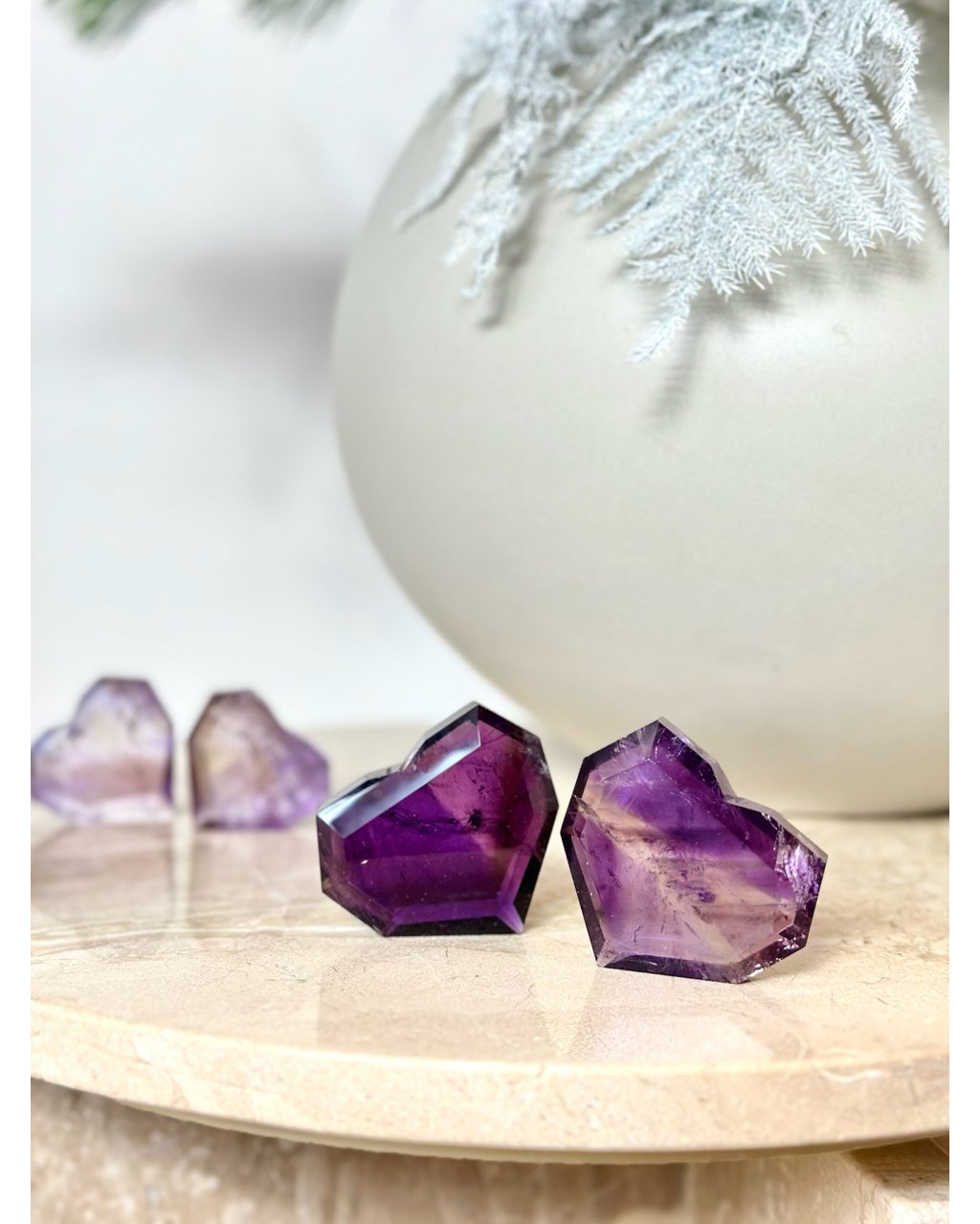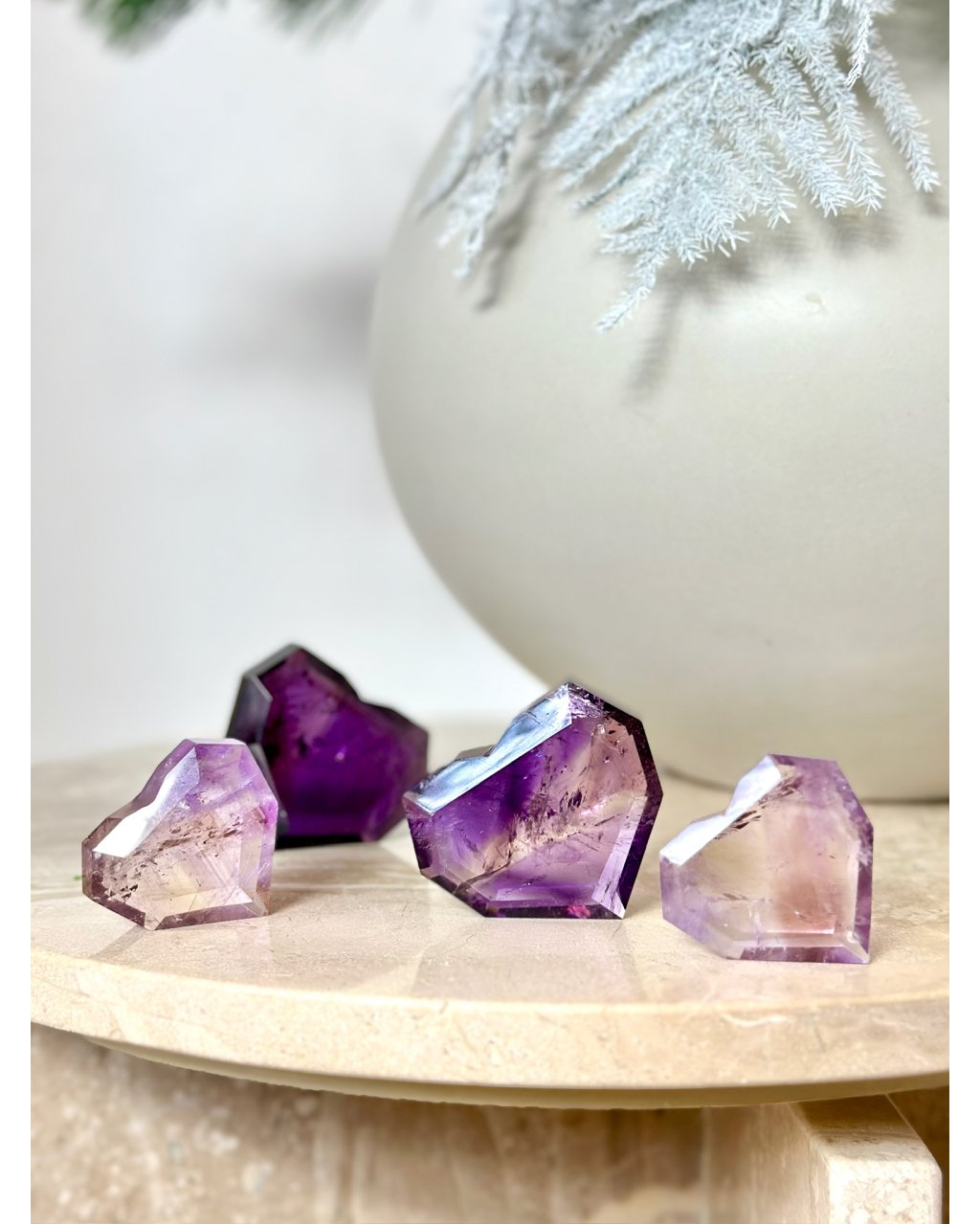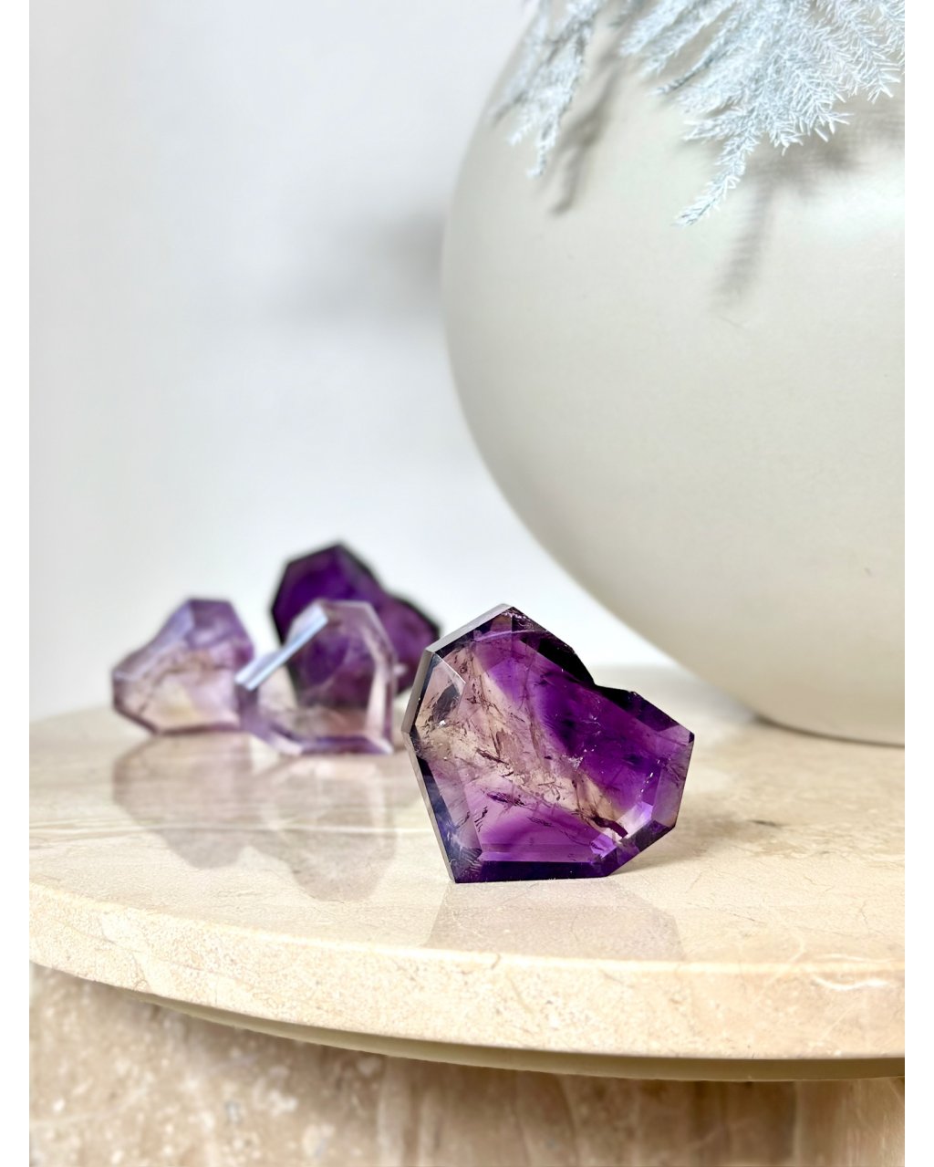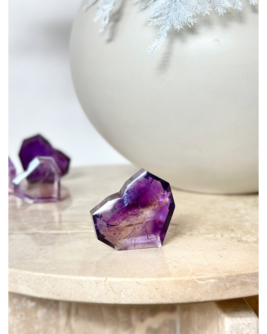 Očista: ametrín čistíme stejně jako ostatní křemenné druhy, pod proudem vody, nebo přes noc v misce, poměrně dobře snáší přímé slunce ale doporučujeme raději stinné místo