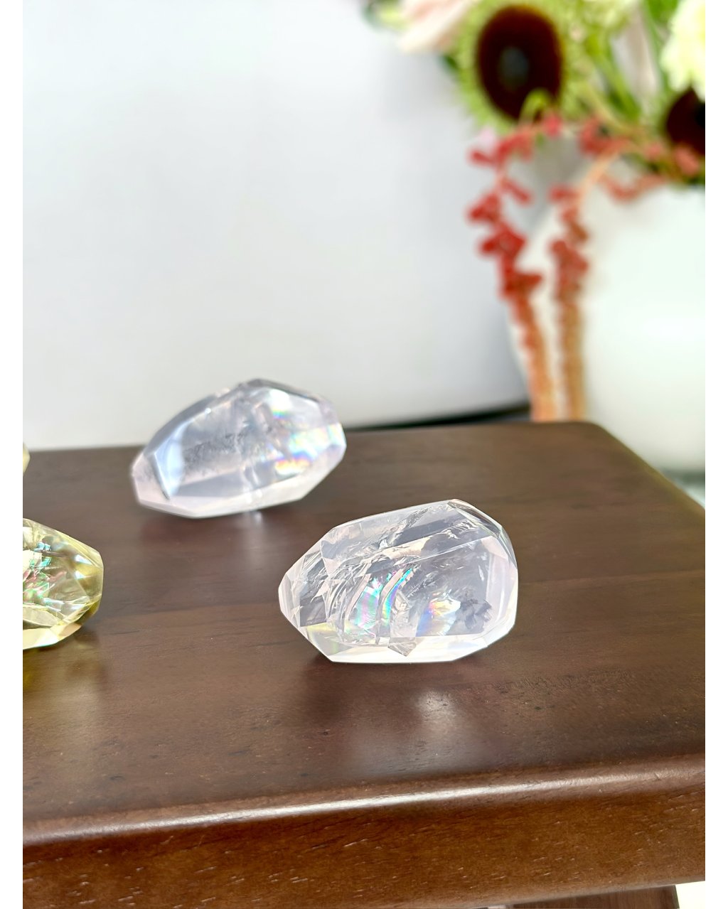Tento ruženín v exkluzivní kvalitě nese uvnitř sebe malý vesmír světla a barev. Jeho duhové záře nejsou jen vizuální hrou, ale jemnými vibracemi otevírají portály do hlubších vrstev vědomí a propojují srdce s energií vesmíru. Každá jiskra uvnitř kamene rezonuje vlastním příběhem, fragmentem nekonečna, který vás jemně vede k sebepoznání, lásce a vnitřní harmonii.