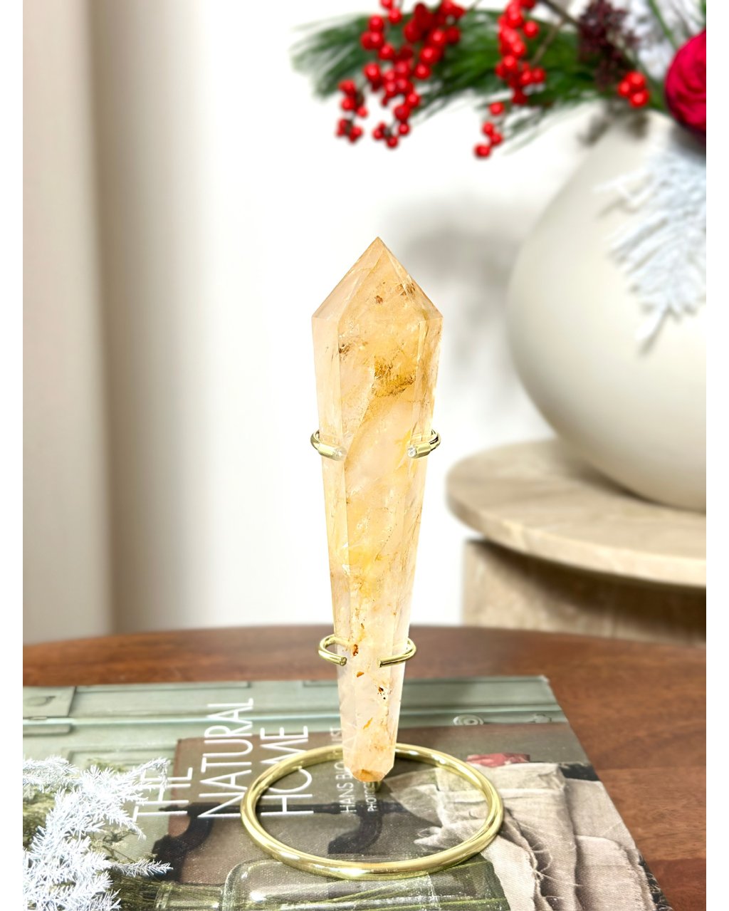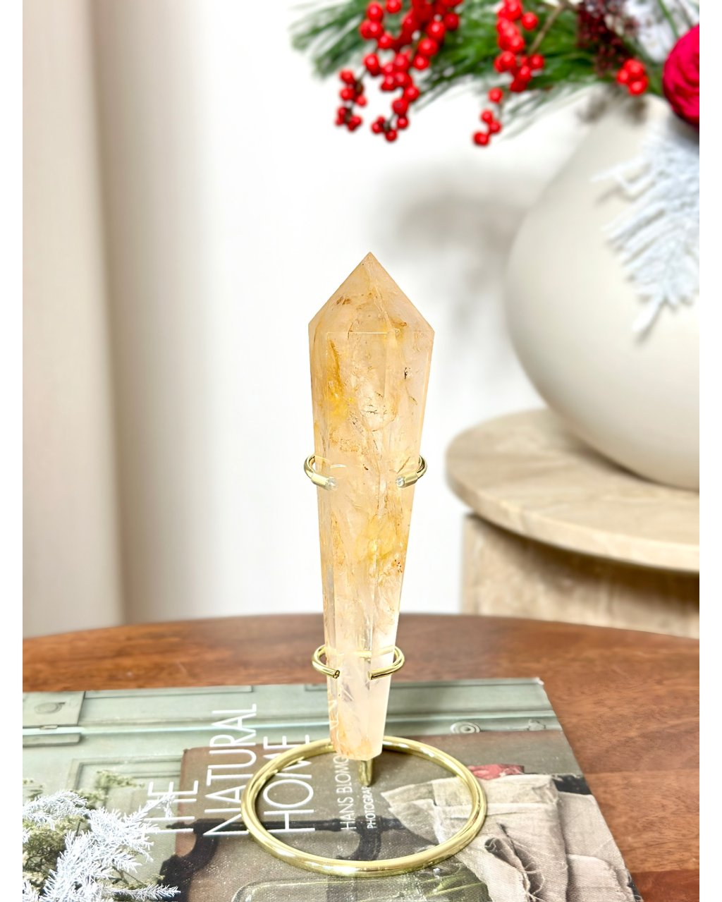 Zlatý léčitel dokáže stimulovat energetické centra srdce a solar plexu zároveň, přináší pocit bezpečí, sebevědomí a vnitřní síly. Jeho plazmatická struktura funguje jako jemný navigátor energie, který vede tok životní síly tam, kde je nejvíce potřeba. Krystal také pomáhá odhalit vnitřní bloky a naučit se je proměnit v tvůrčí sílu, aniž by člověka zatížil pocitem tlaku.