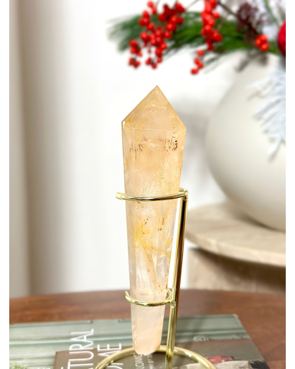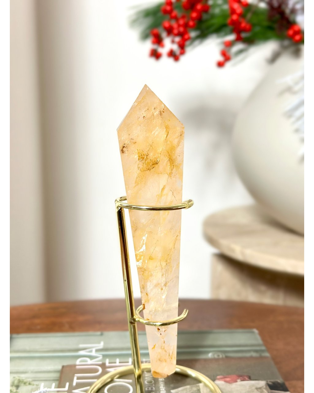 Tato zlatá plazmatická hůlka není jen estetickým klenotem je to živý nástroj energie, který vyzařuje jas a harmonii do prostoru. Každá část hůlky vibruje jemnými plazmatickými proudy, které lze cítit při držení či meditaci, a odráží spektrum barev, které působí nejen vizuálně, ale i energeticky. Její podstavec vytváří stabilní „domov“ pro hůlku, z něhož vyzařuje světlo do celého prostoru.