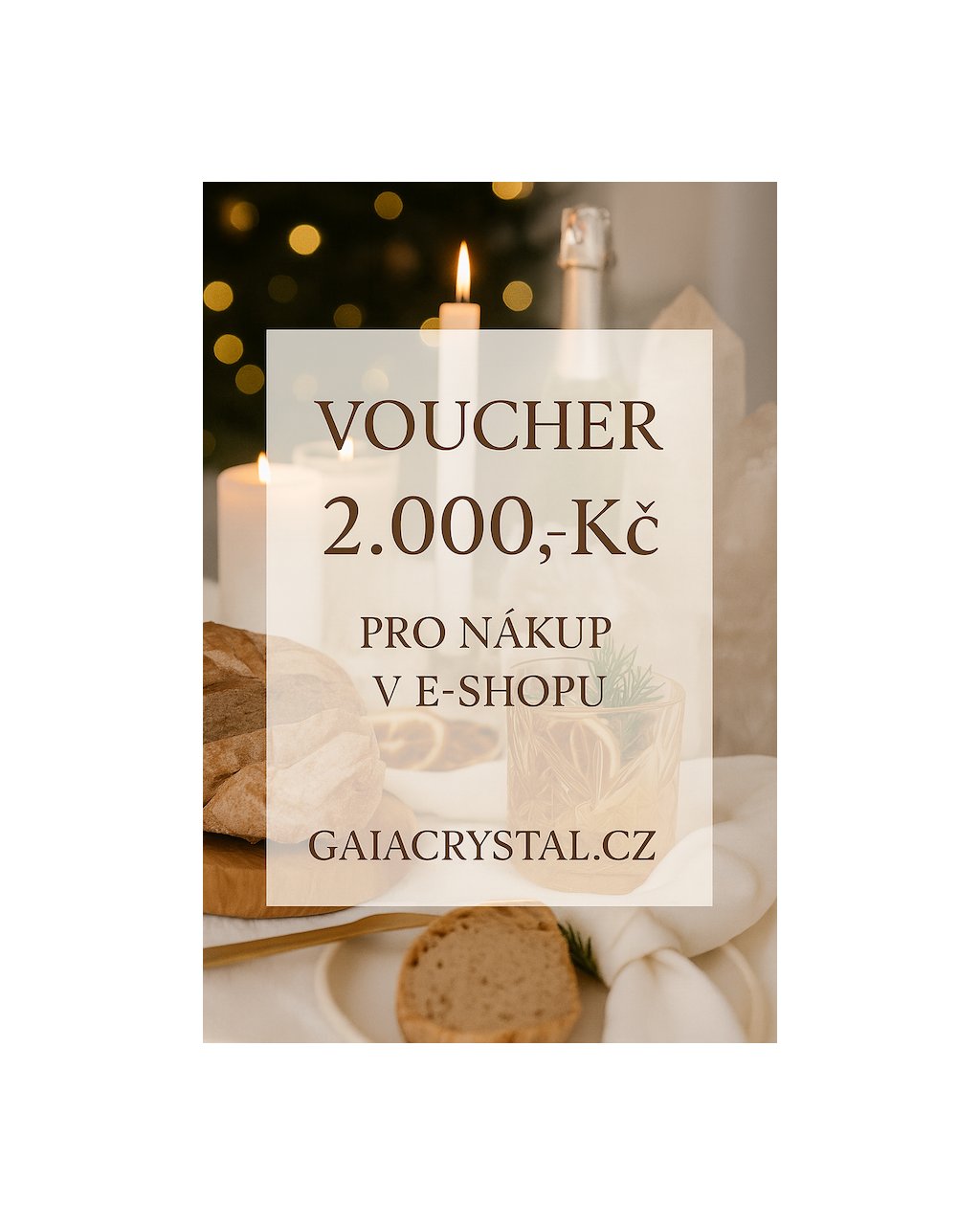 • Poukaz lze uplatnit jednorázově ke snížení hodnoty nákupu o hodnotu poukazu (1.000 – 2.000 Kč) na e-shopu GaiaCrystal.cz