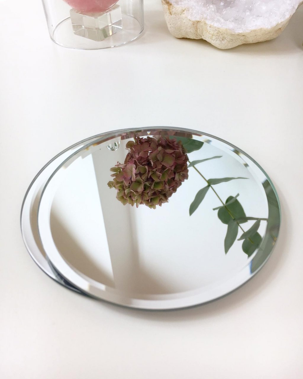 Oblíbené dekorační zrcátko pod minerální kousky. Díky němu se bude záře a energie vašich drahých kamenů odrážet do všech koutů domova.
