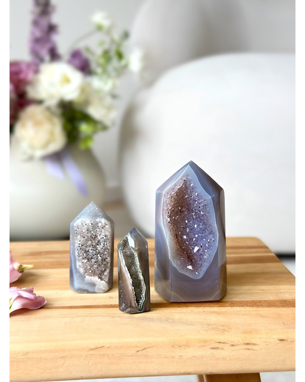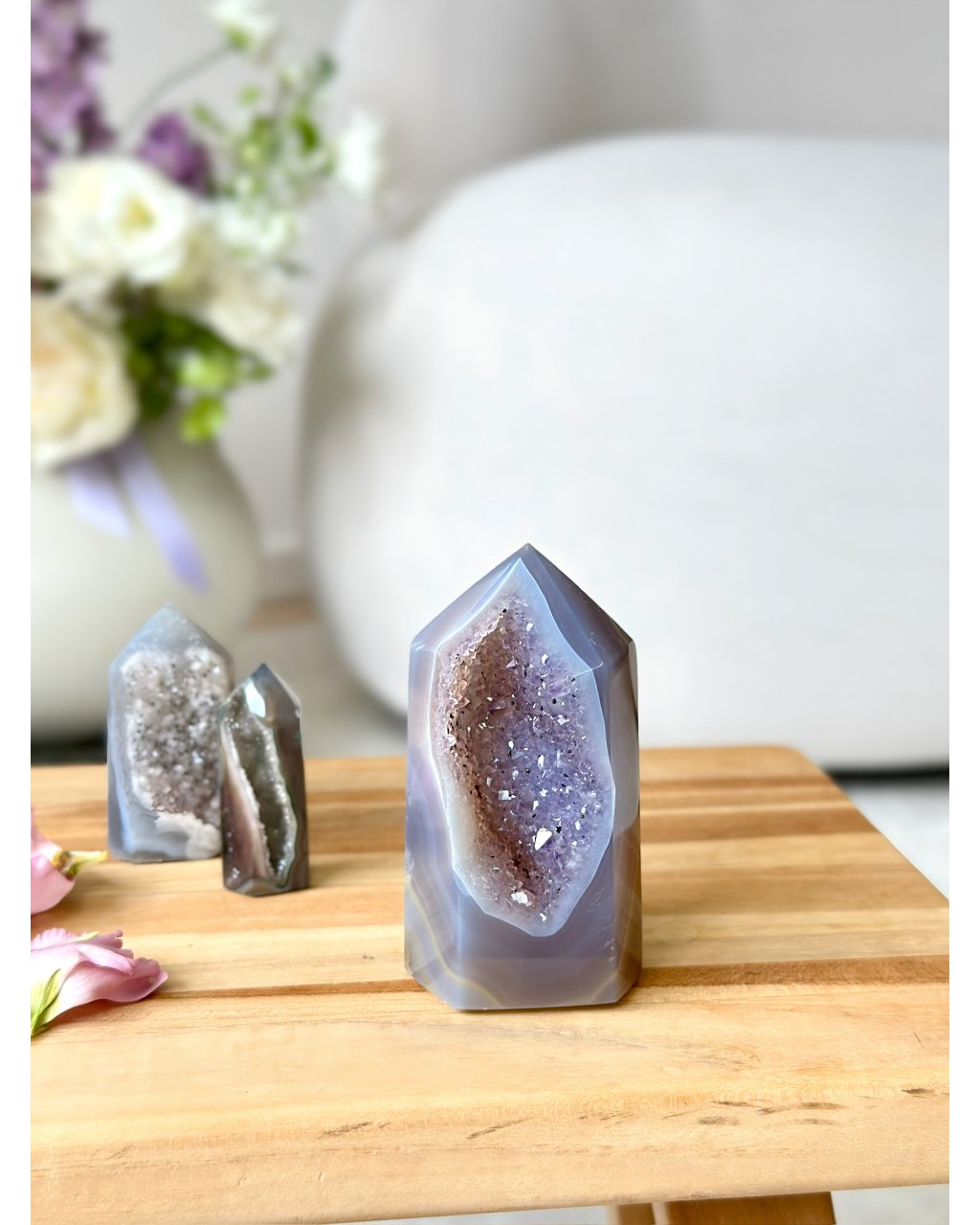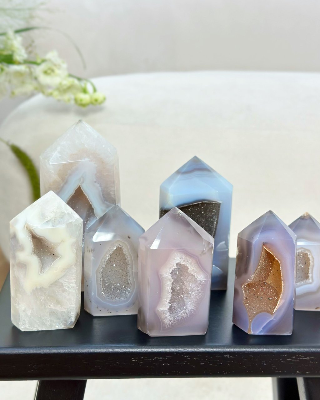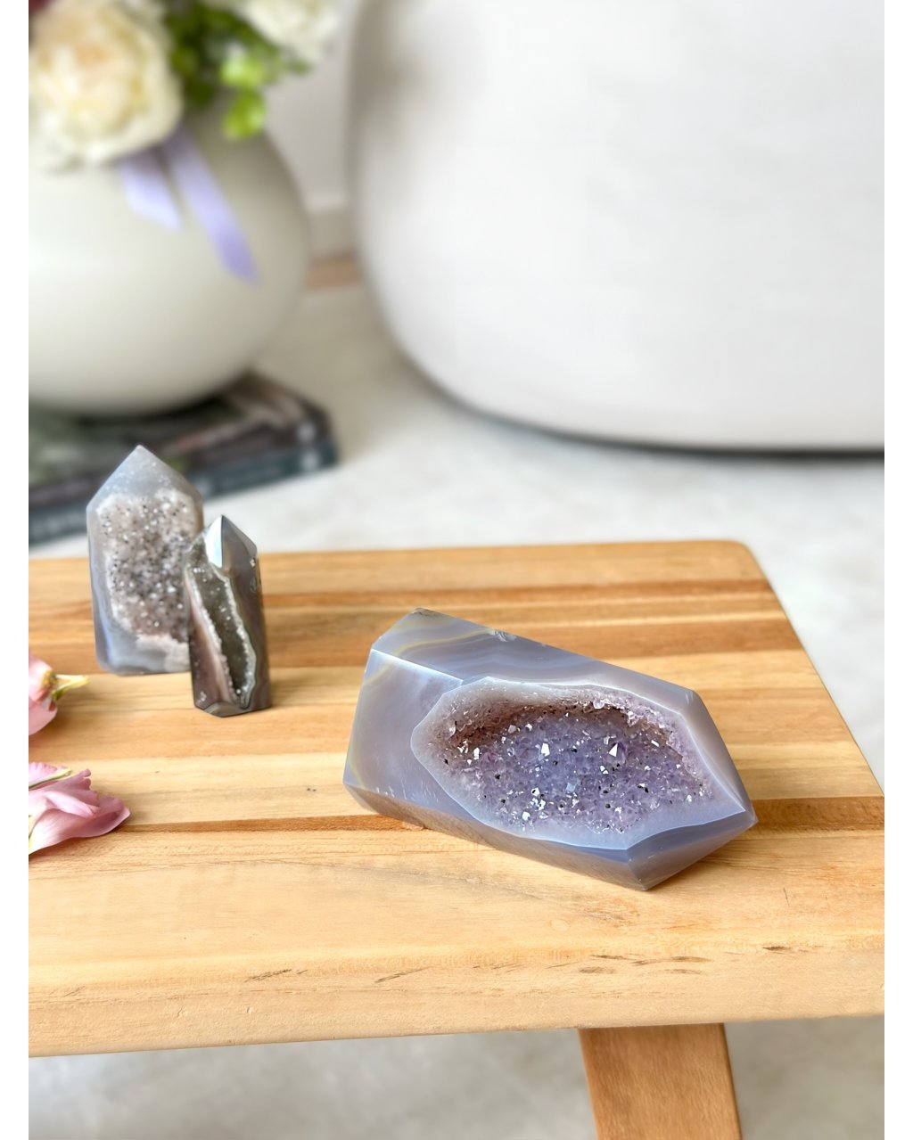 Acháty s vnitřní drúzou bývají výjimečně vhodné pro lidi, kteří se učí naslouchat sobě. Nepřehluší tě jako jiné krystaly – spíš tě pozvou zpět domů. Do ticha, kde si konečně uslyšíš.