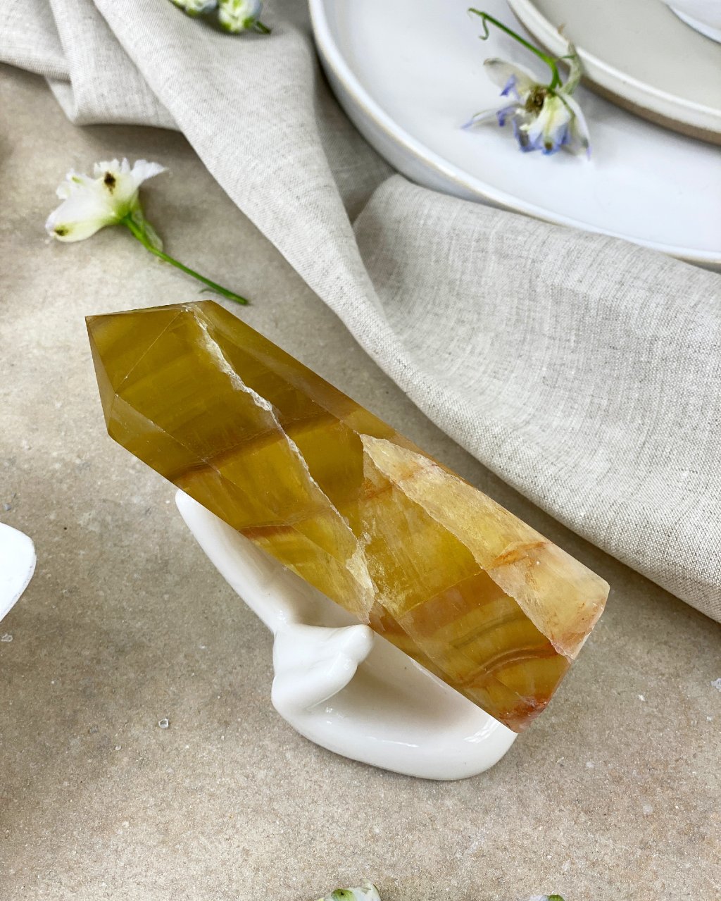 Fluorit hrot obelisk žlutý 12cm 240g AAA