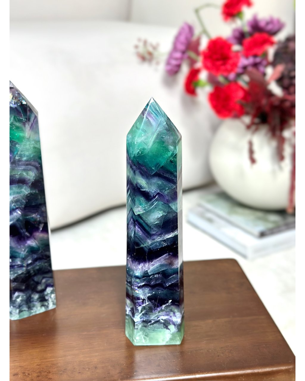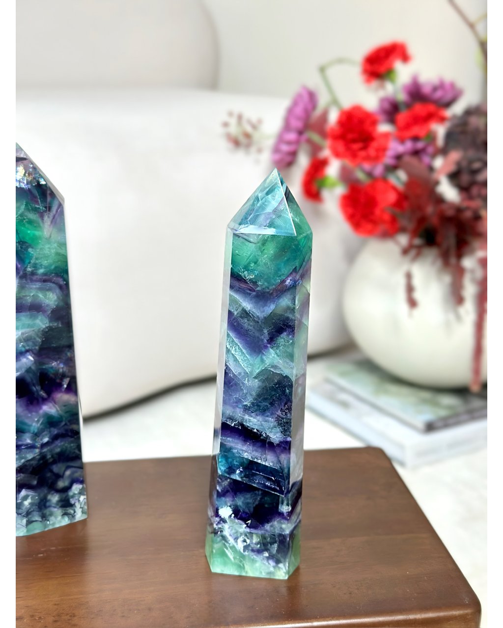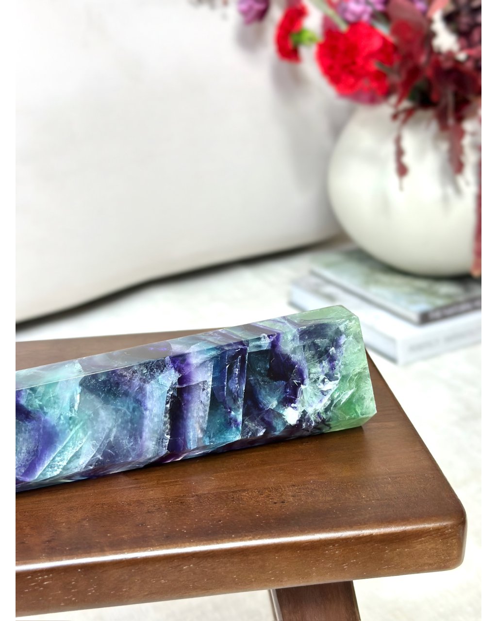 Když stojí v prostoru, je jako tiché světelné srdce místnosti, drží klid, čistí, stabilizuje, a zároveň jemně vede k tomu, aby člověk byl více sám sebou, více přítomný, více vědomý. Fluoritový sloup světla je strážcem duševní i duchovní rovnováhy.