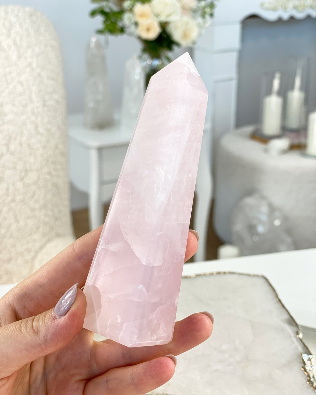 Očista: opláchněte vlažnou vodou nebo nechte projít kouřem z vykuřovadla, nabijte ve stínu, aby neztratil svou růžovou barvu