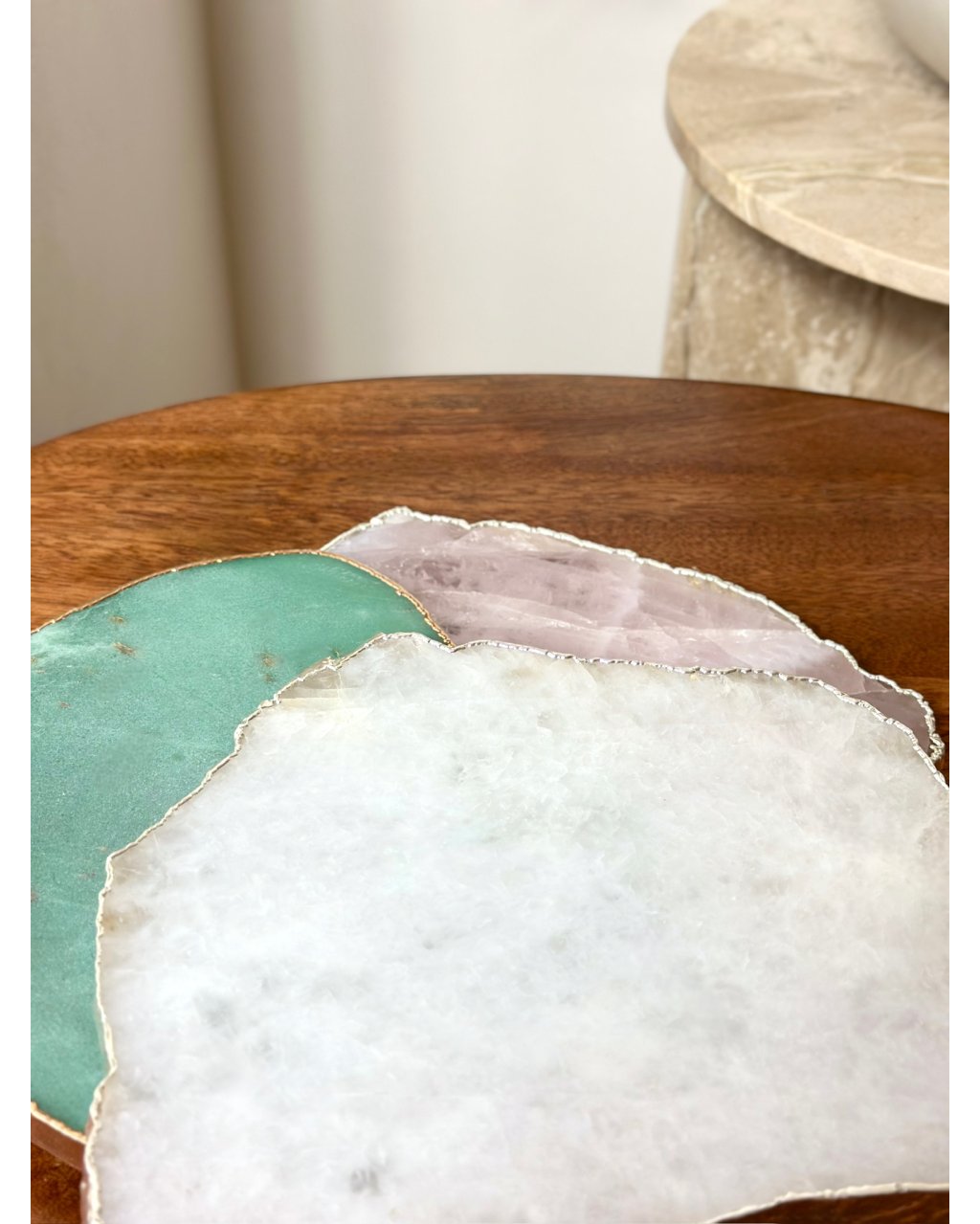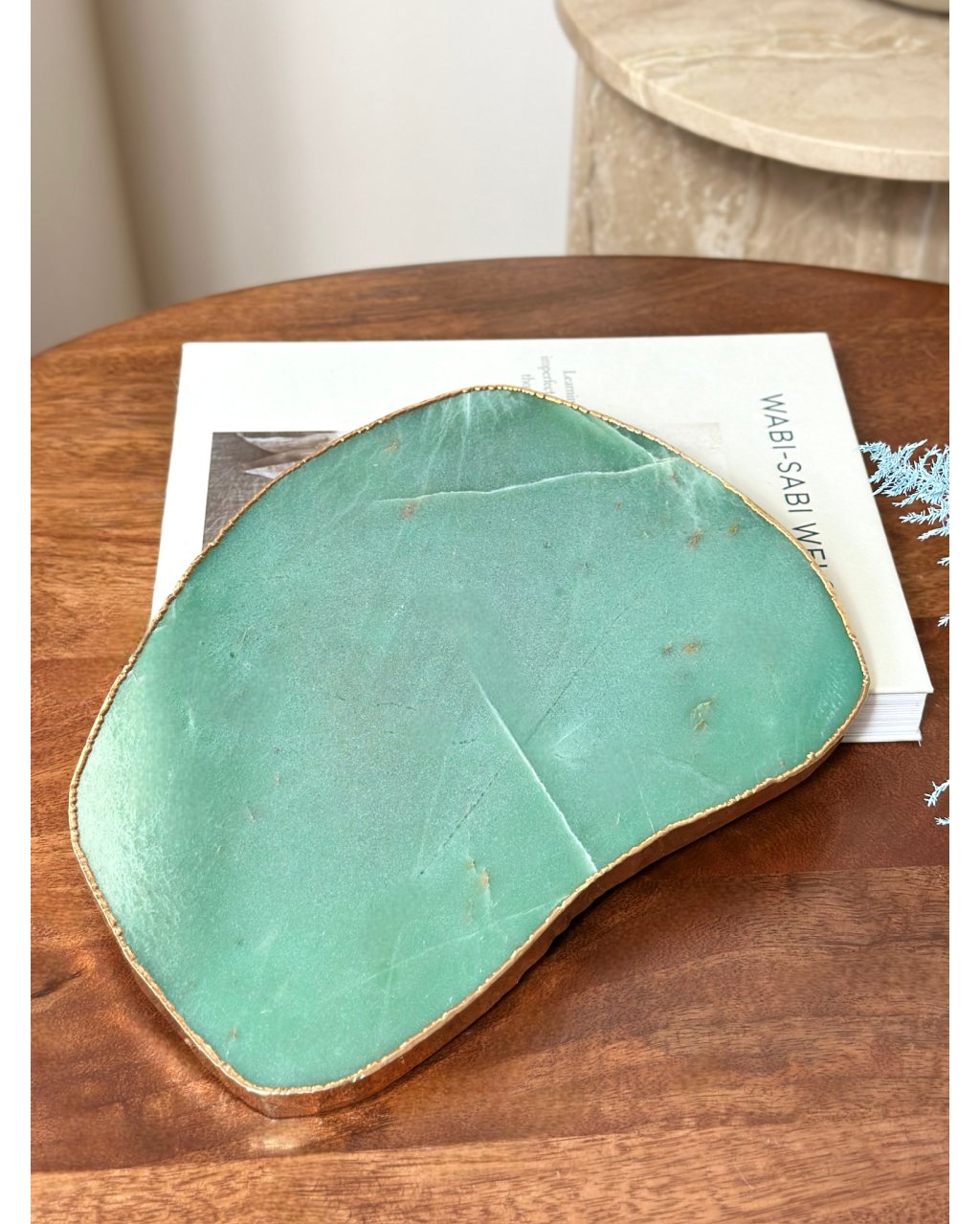 Deska z nefritu se zlatým lemováním je výjimečný přírodní skvost, který v sobě propojuje prastarou sílu Země s energií hojnosti, harmonie a ochrany. Nefrit je po tisíciletí uctíván jako kámen moudrosti, prosperity a dlouhověkosti, a v mnoha kulturách byl považován za posvátný minerál, který chrání svého nositele i prostor před negativními vlivy. V podobě luxusní desky se stává nejen elegantním designovým doplňkem, ale také silným energetickým stabilizátorem prostoru.