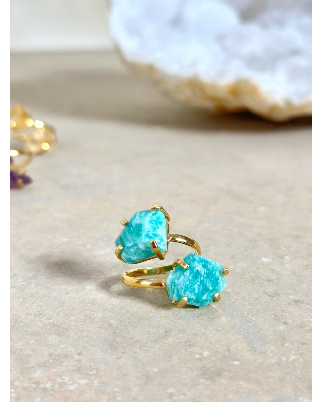 Prsten se dvěma surovými amazonity nese energii pravdy, klidu a vnitřní rovnováhy. Dva kameny v přirozené podobě vytvářejí vyvážené pole, které jemně, ale vytrvale harmonizuje emoce a myšlenky. Amazonit je kámen, který k tomu pomůže utišit vnitřní napětí, zklidnit přetíženou mysl a přinést pocit bezpečí ve vlastním prostoru.