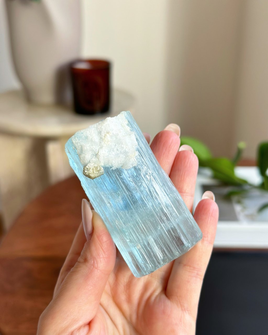 Akvamarín krystal pohyblivá bublinka Pákistán 141g