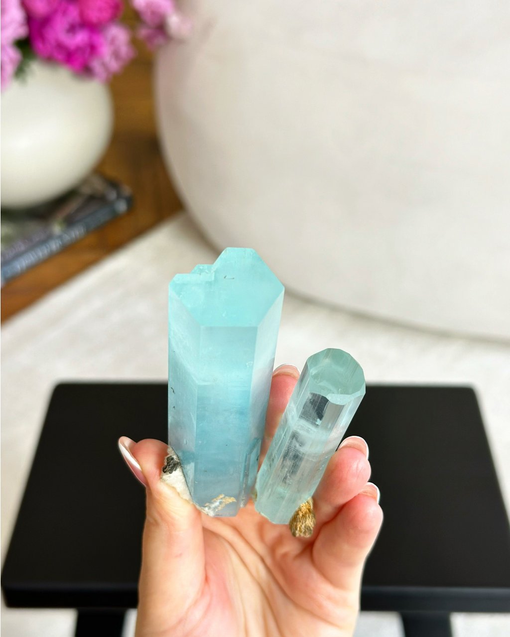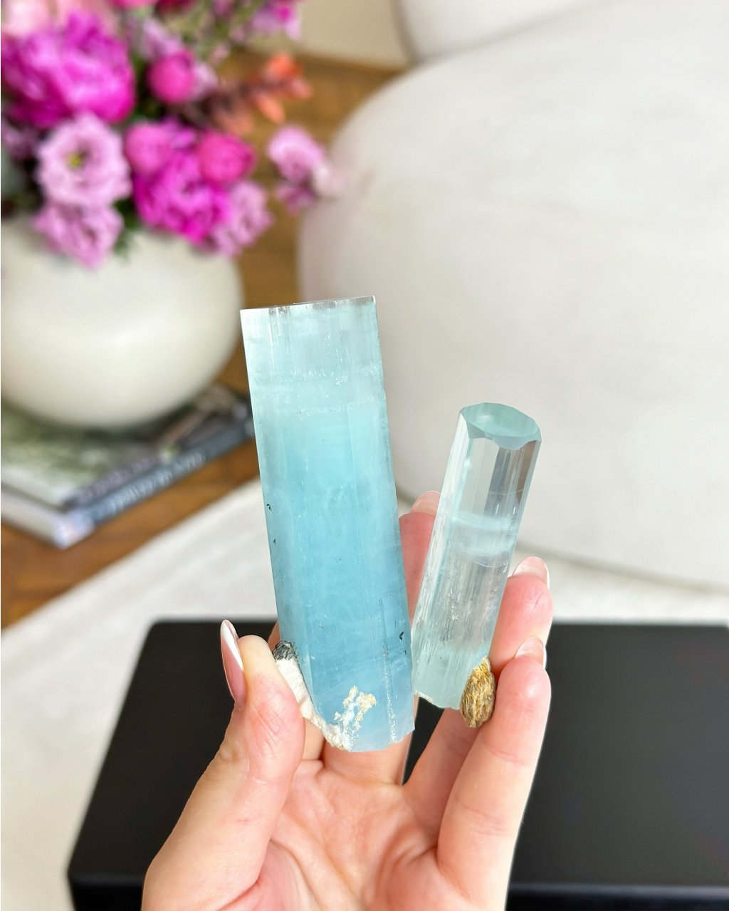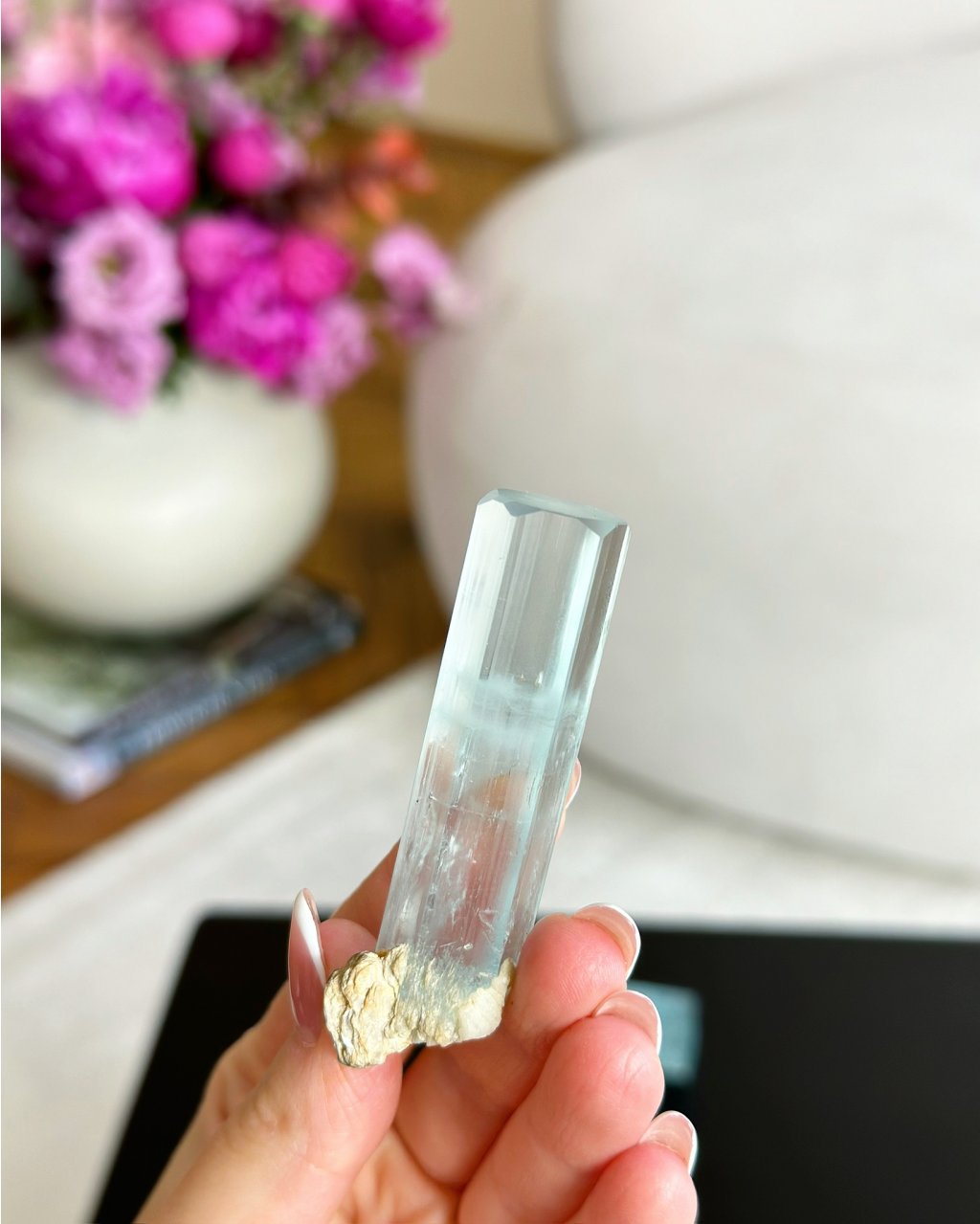 Akvamarín surový čirý krystal ukončený Pákistán 33g TOP