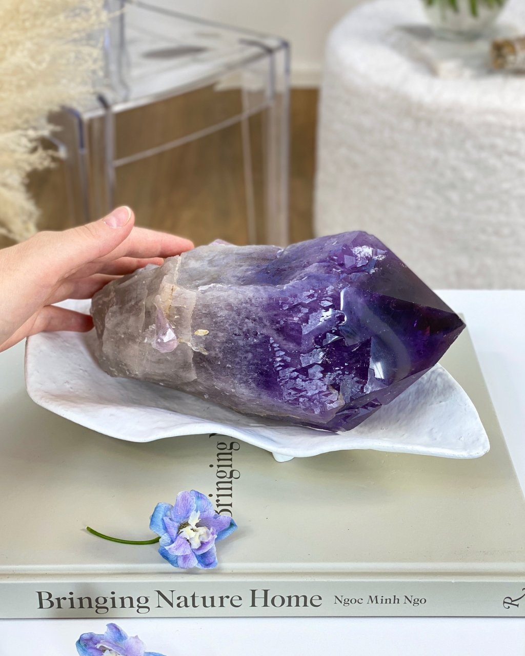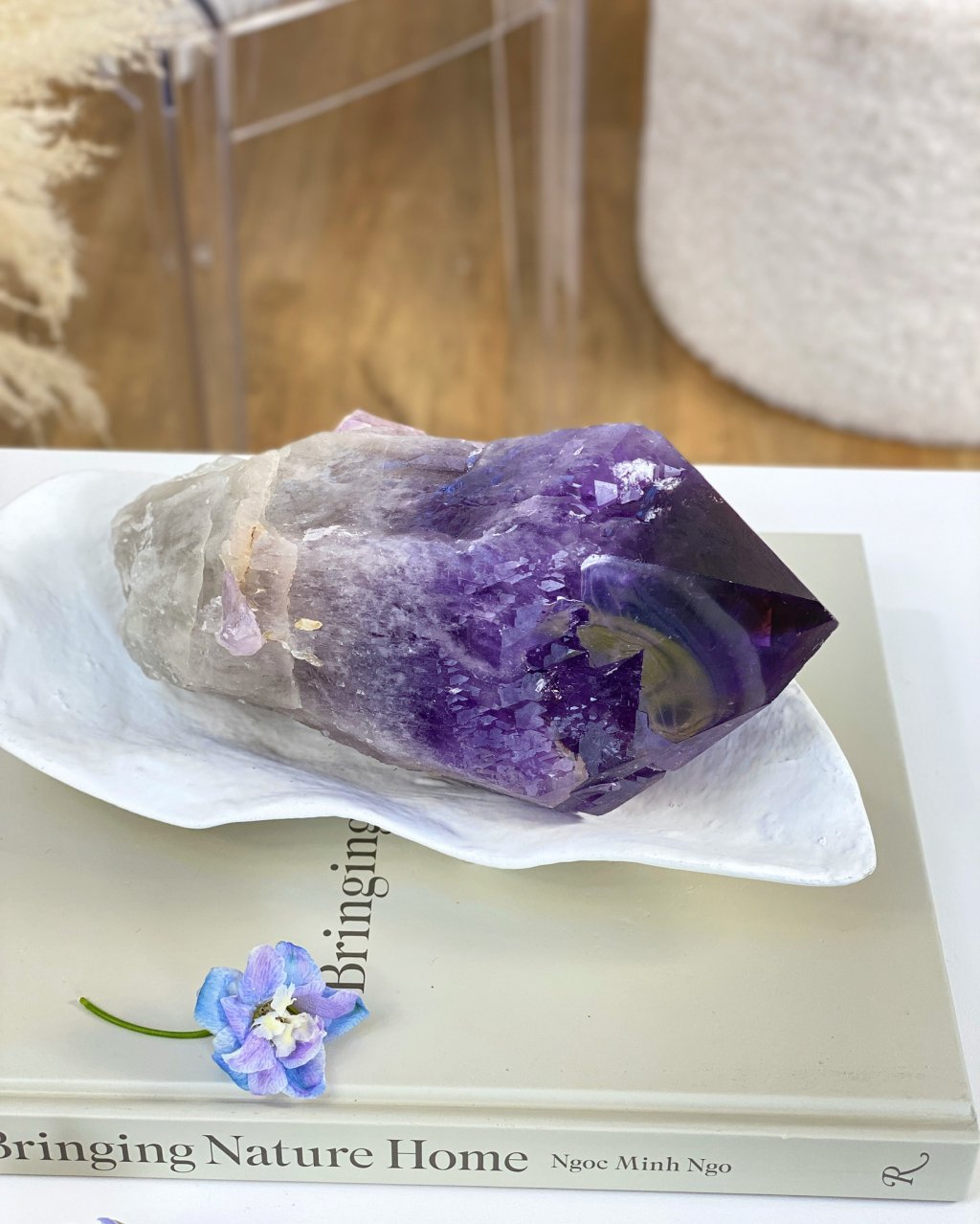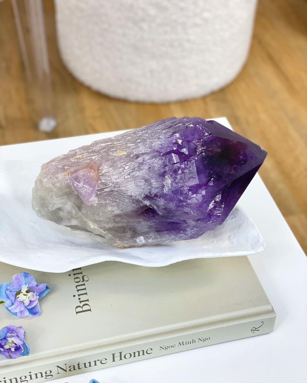 Očista: opláchněte pod proudem vlažné vody, nebo v misce s vodou společně s křišťálem, můžete také použít kouř z vykuřovadla, poté nabijte ve stínu, aby neztratil svou fialovou barvu